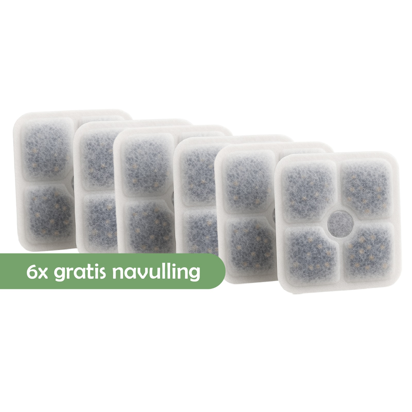 Met deze navulling set kies je niet alleen voor gemak maar ook voor duurzaamheid. In plaats van telkens een nieuw plastic filter te kopen kun je de drinkfontein eenvoudig opnieuw vullen. Dat is beter voor het milieu en ook voor je portemonnee.