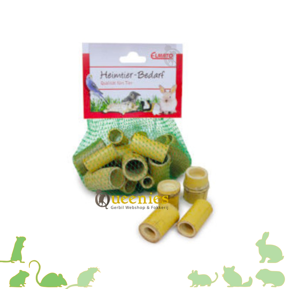 Wilt u zelf ook iets knutselen net als speelplaats Mickey? Gebruik dan het Knabbeltouw met plankjes, gemaakt van natuurlijke hennep met verse houten plakjes bijvoorbeeld. Ook leuk : deze bamboe buisjes, de schijven of met de veters en kettingen, die we ook verkopen. Na wat knutseltijd met de kinderen, een leuk klim en klauter object geknutseld voor de geliefde gerbils of hamsters. Inhoud ca 12 bamboe buisjes
