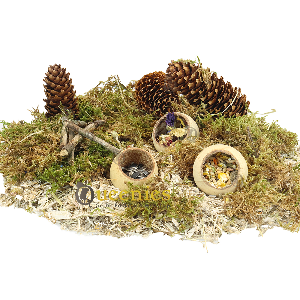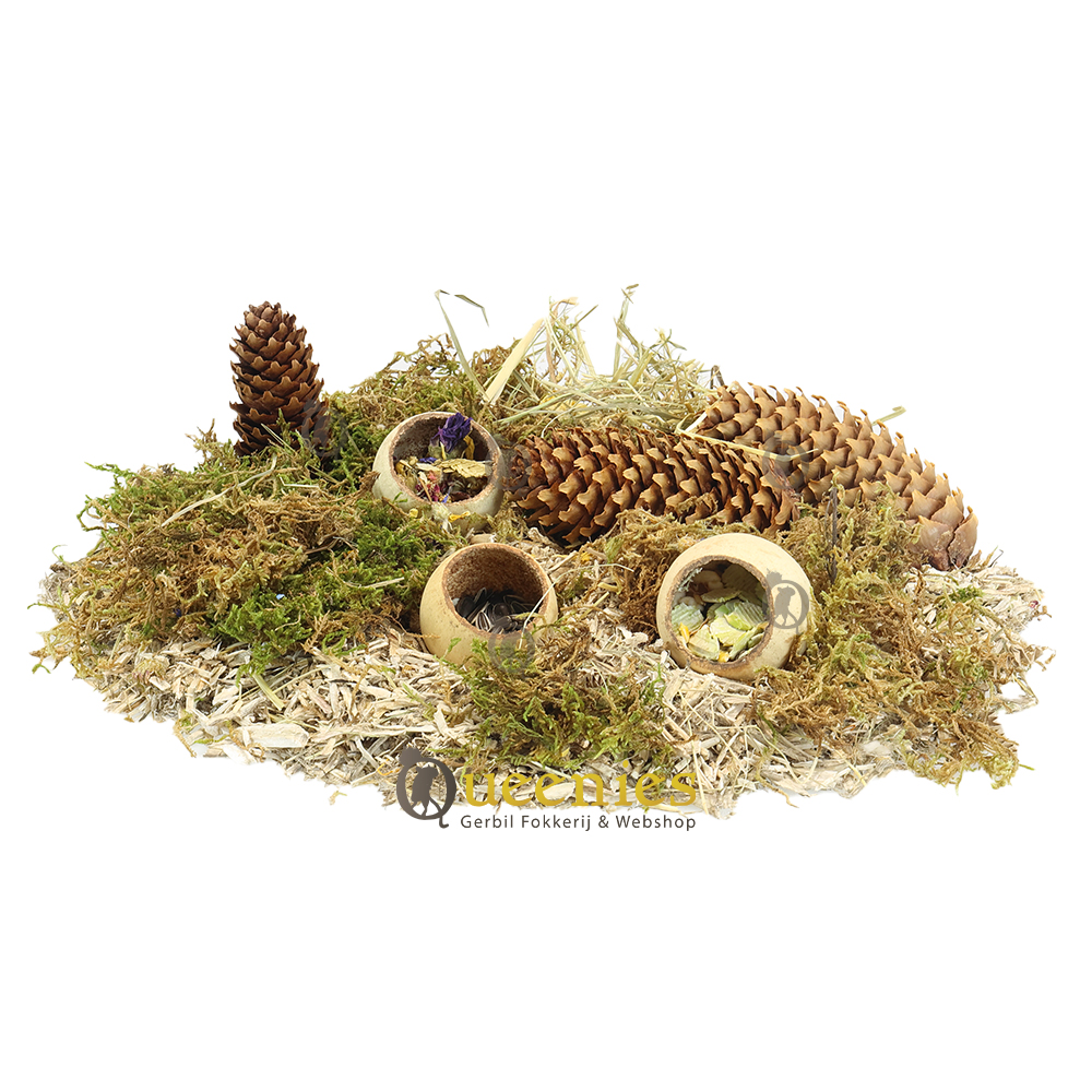 De cup 5-7 cm geeft een natuurlijke uitstraling maar wel net even anders dan wat er doorgaans gebruikt wordt bij hamsterscaping. Met dit product kunt u mooie wegen aanleggen bijvoorbeeld, een omheining van een meertje creeren of bruggen mee bouwen. Ook is dit product te gebruiken als voerbak of snackbak voor knaagdieren. Het is dan meer als snackbak te gebruiken dan als voerbak omdat het product kan rollen. U kunt in deze cups snacks doen en verstoppen in de bodembedekking wat het natuurlijke zoek gedrag naar eten stimuleert. Hierdoor laat u de hamster op zoek gaan naar zijn eigen voer wat hem dan ook meer traint om actief naar eten opzoek te laten gaan ( foerageren ). Gerbils vinden het heerlijk om uitgedaagd te worden. Wanneer u dit bij gerbils doet stimuleert het hun in het zoeken naar uitdagingen.