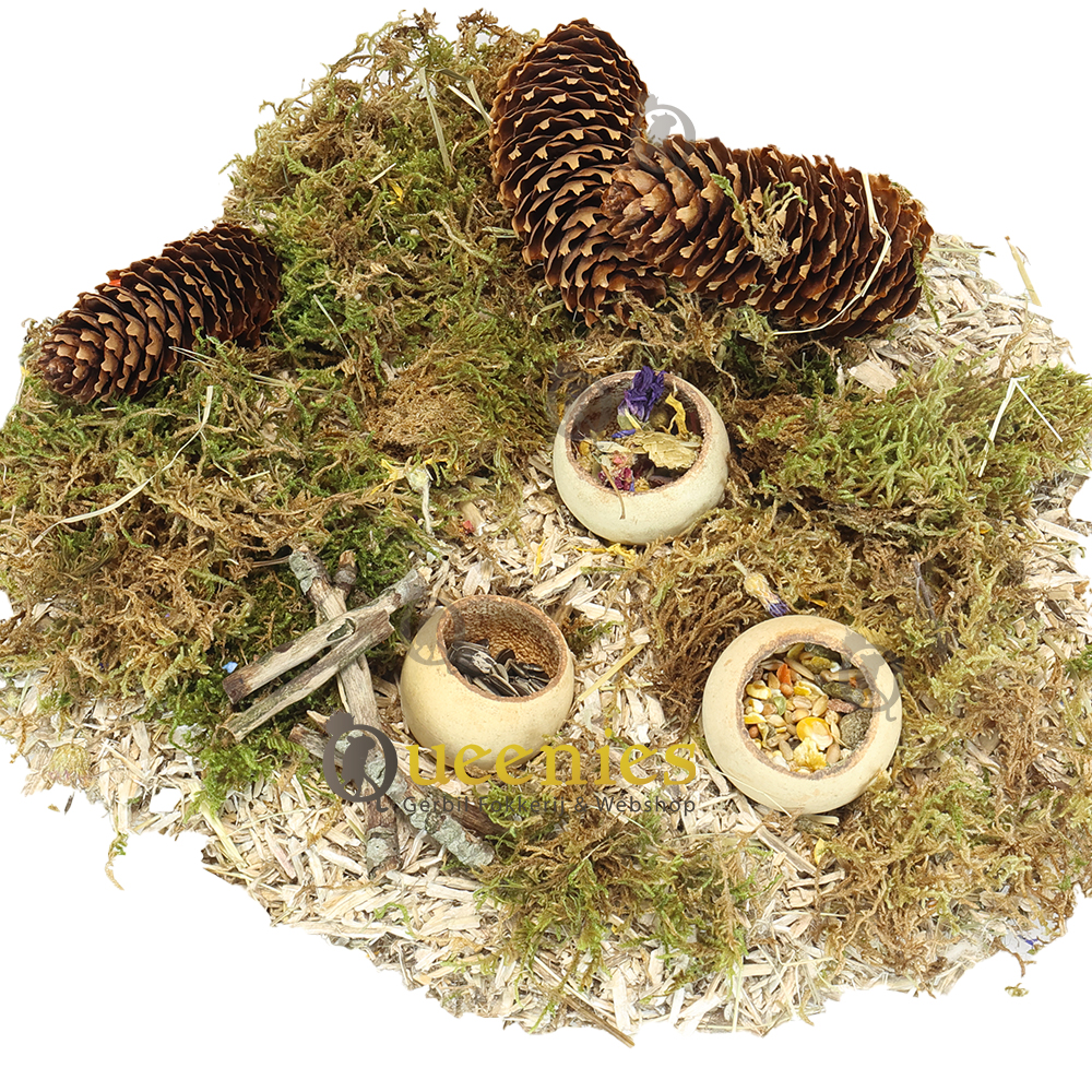 Als idee kunt u ook wat mos over de Cup heen leggen. Mos is een veel gebruikt product bij hamsterscaping.