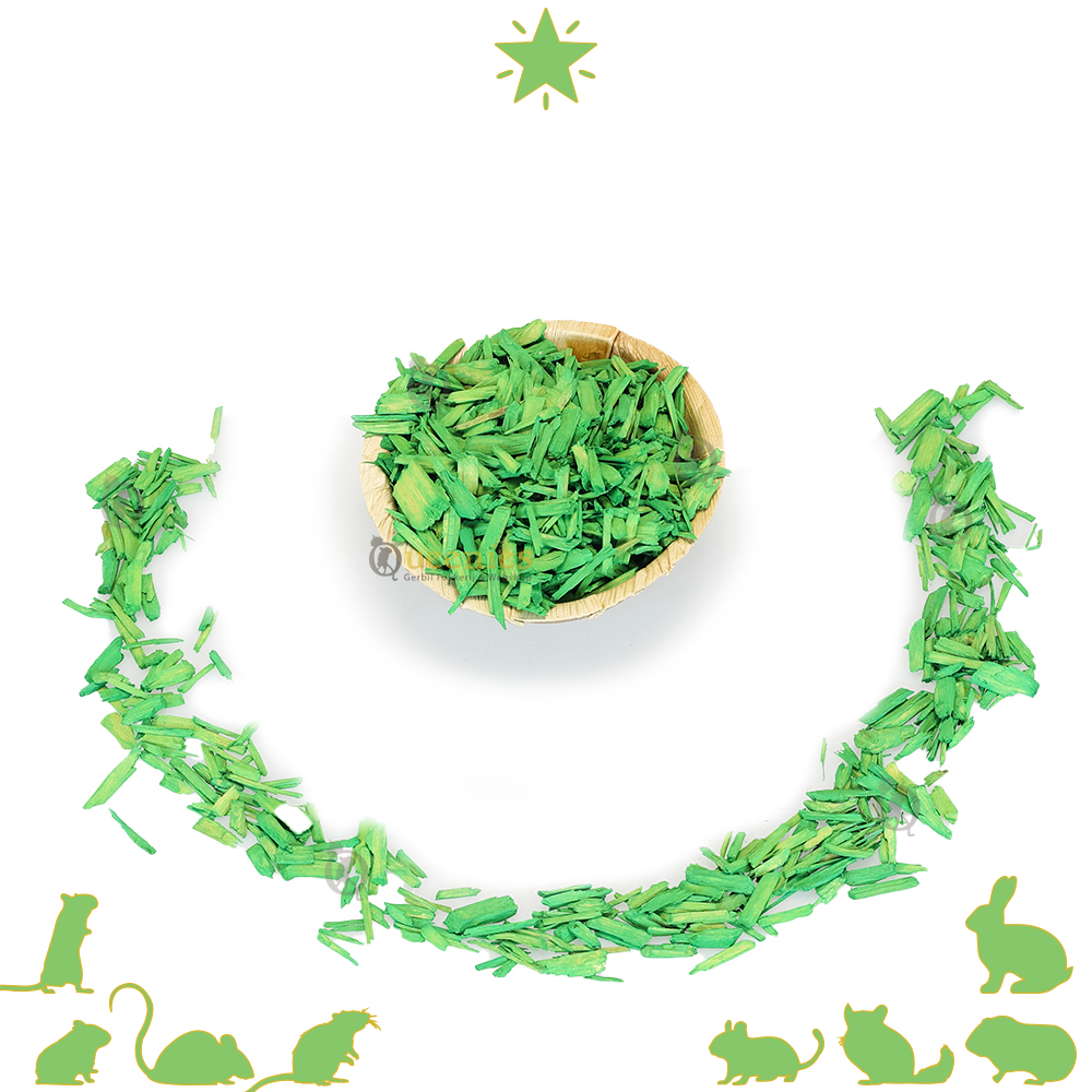 Gebruik Color Wood om levendige kleuraccenten toe te voegen aan de Hamsterscape voor kleine knaagdieren zoals Muizen, Dwerghamsters, Hamsters en Gerbils. Het biedt een creatieve manier om natuurlijke elementen zoals rivieren, grasvelden, of bospaden te simuleren met kleuren zoals blauw voor water, groen voor gras, en bruin voor aarde. Naast het prachtige kleurrijke aspect is Color Wood ook duurzaam en gaat het lang mee. Meerder verschoon beurten kunt u doen met Color Wood waardoor het een kosteneffectieve optie is om het verblijf van uw huisdier te verrijken.