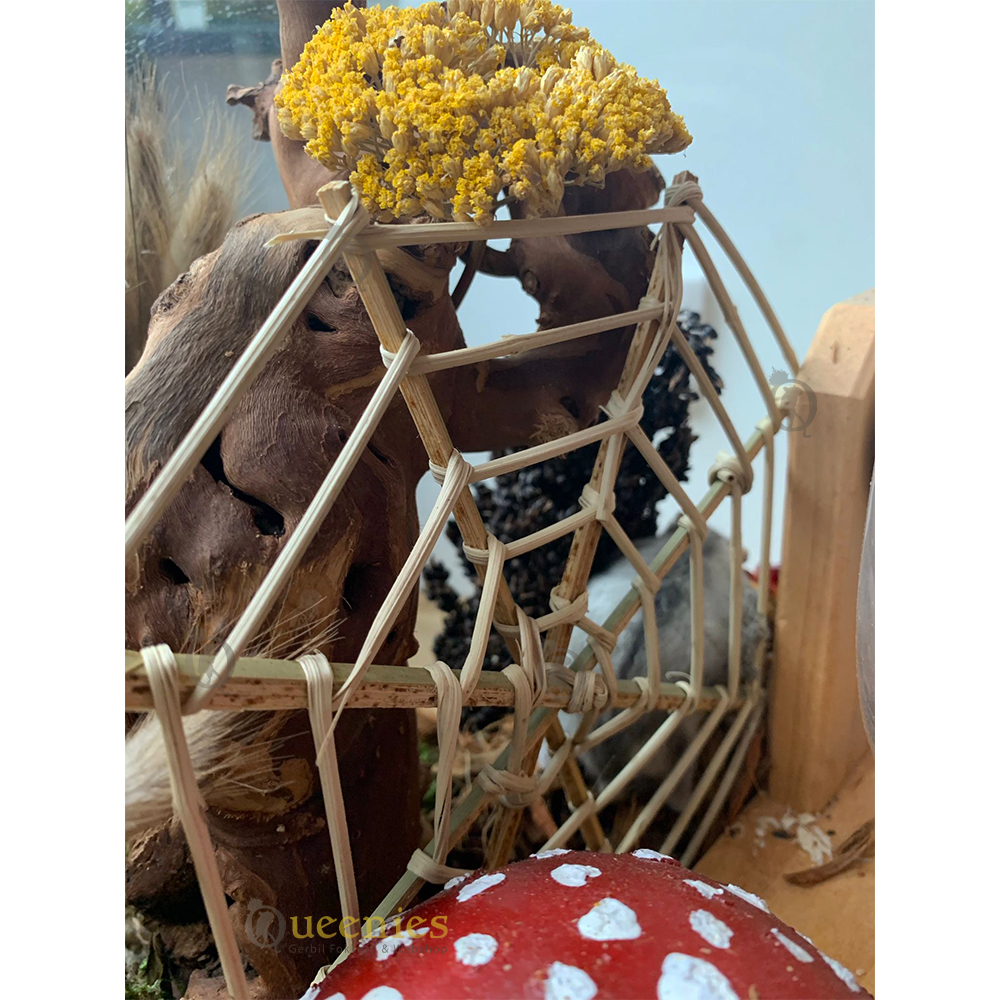 Deze Spinnenrag voor Hamsterscaping is gemaakt van wilgenhout. Blank wilgenhout zonder barst. Er zijn geen onnatuurlijke producten toegevoegd aan deze spiunnenrag. Het is gemaakt van 100% natuurlijke producten zonder eventuele spijkers of lijm. Dat maakt deze spinnerag van wilgenhout ook een 100% veillig artikel voor uw Knaagdieren.