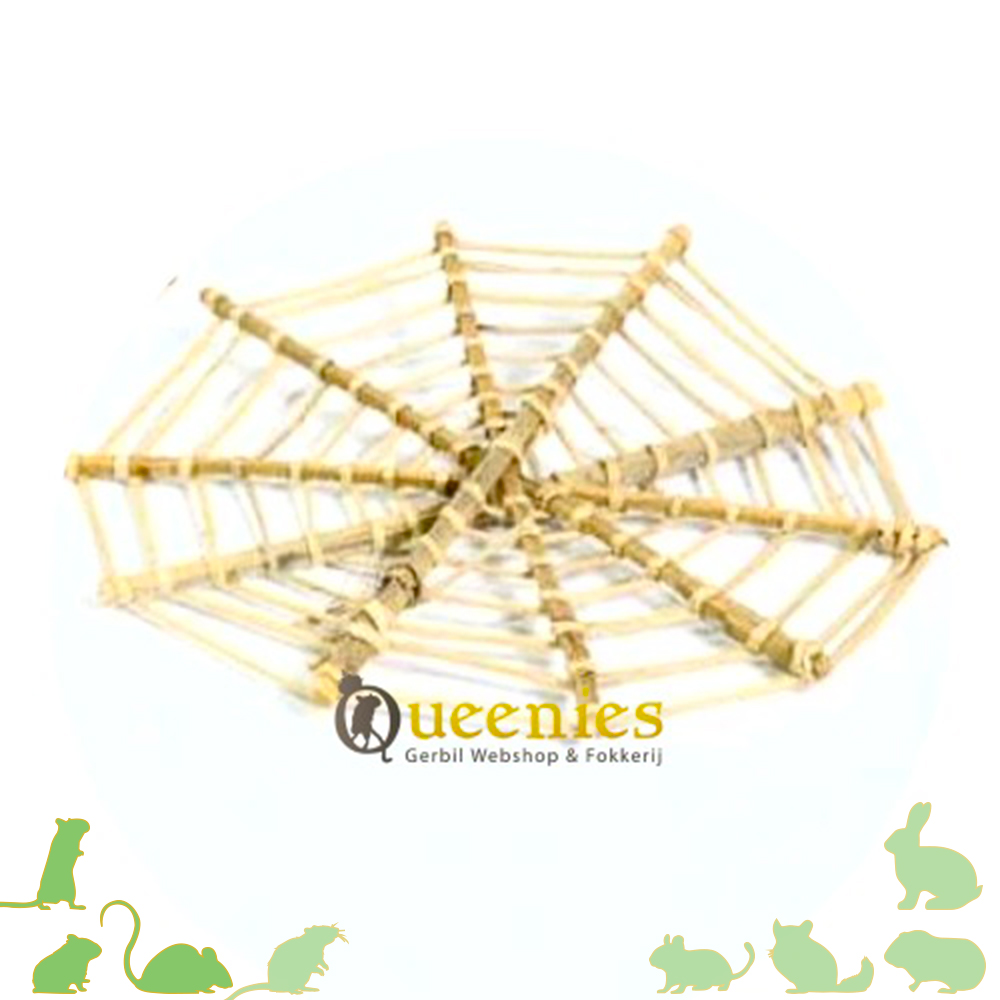 Deze spinnenrag is erg leuk wanneer u gaat Hamsterscapen en uw Knaagdieren terrarium wilt voorzien van natuurlijke decoratie. Vaak wordt een spinnenrag nog gemist in een Hamsterscape, en dat is niet zo raar omdat wij spinnen liever buiten zien dan binnen. Daardoor hebben we deze natuurlijke spinnenrag ontworpen en gemaakt. Deze Spinnenrag is een Wilgenrag gemaakt van stevig knaaghout. Wanneer uw Hamster of Gerbil hieraan gaat knabbelen zal hij of zij ook direct zijn gebit verzorgen doordat de tanden dan op een natuurlijke manier doen slijten.