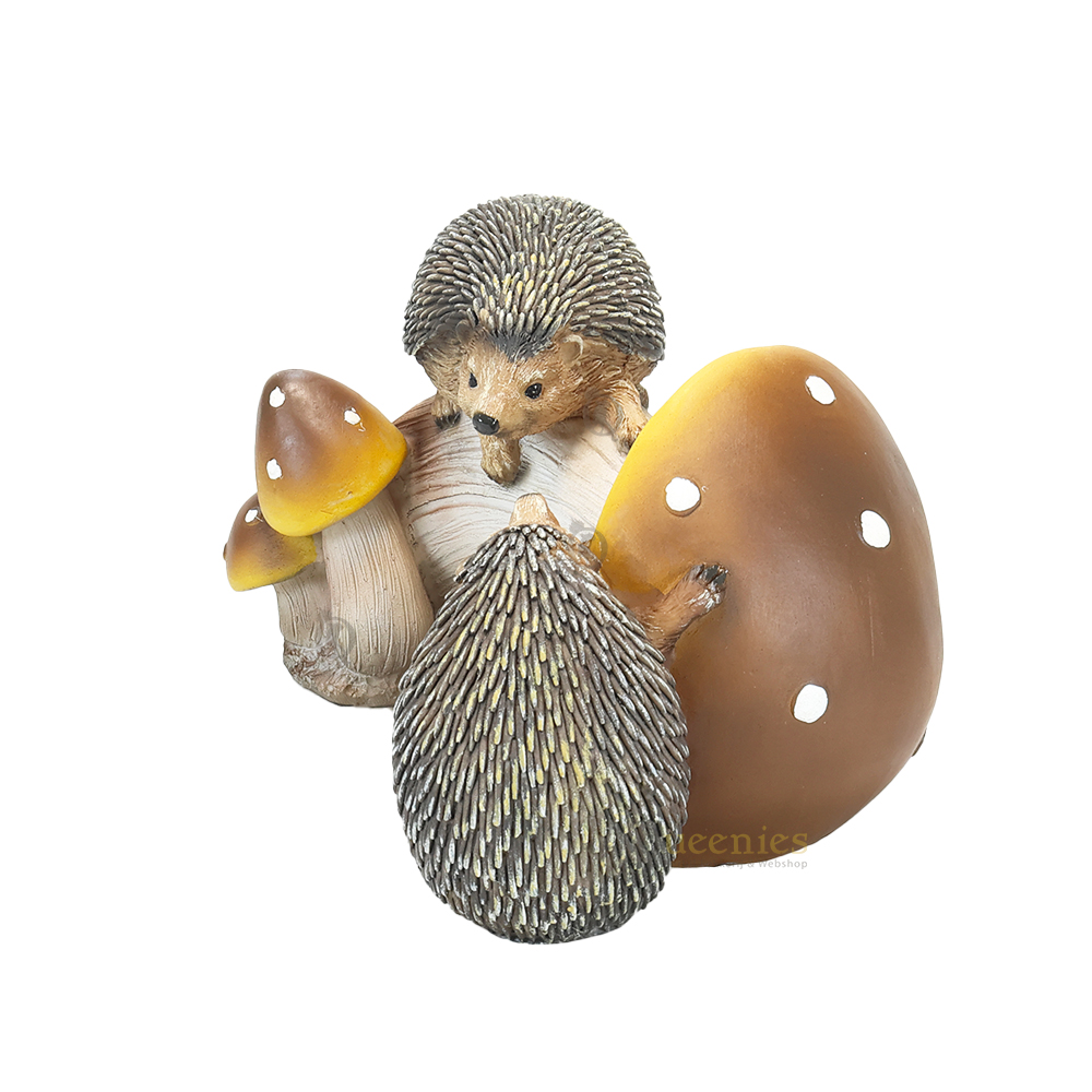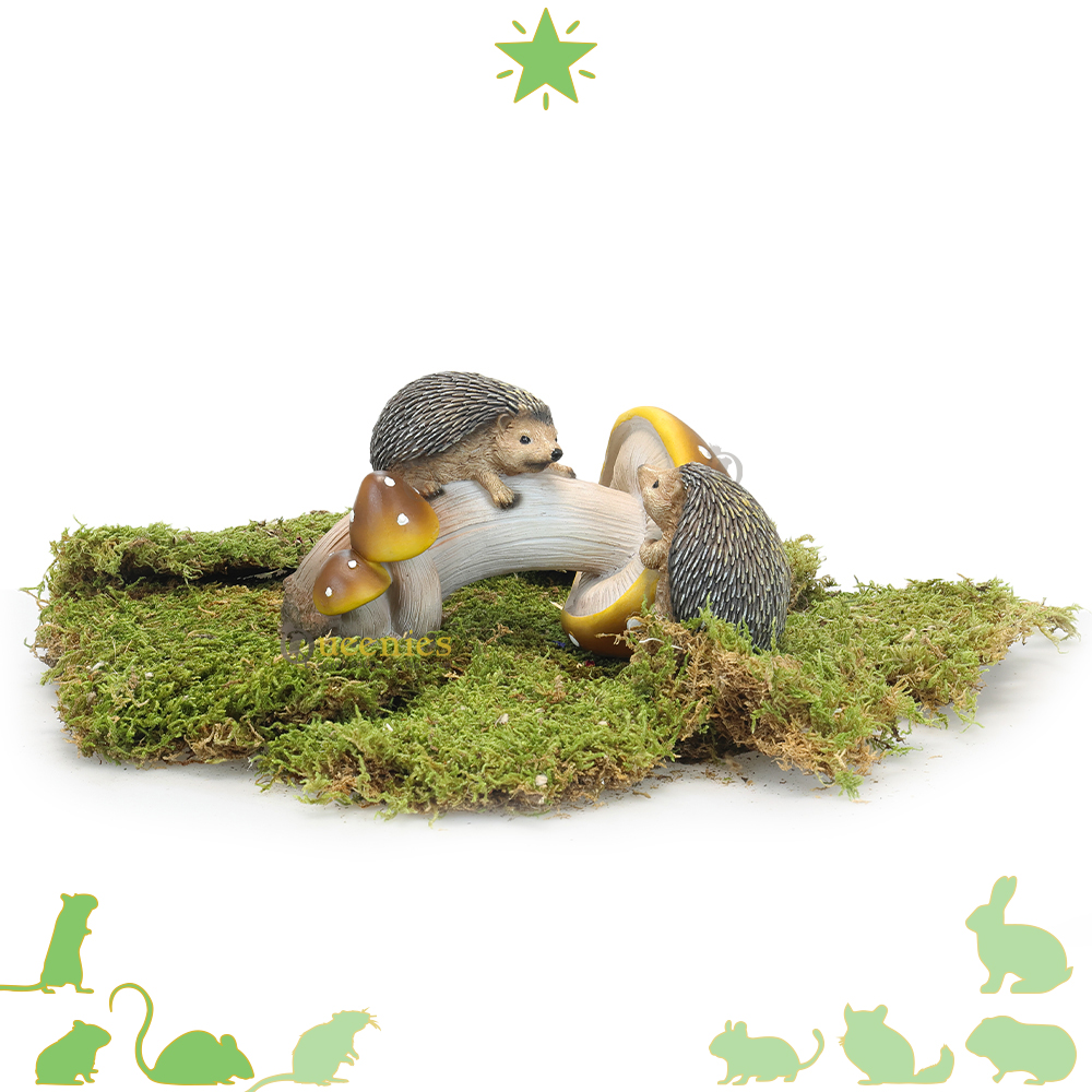 Deze twee leuke Egels met een Paddenstoel is een super leuk decoratie artikel voor Hamsterscaping. Een eyecatcher om toe te voegen aan een herfstachtige Hamsterscape of om ergens in huis neer te zetten, bijvoorbeeld in de vensterbank. De natuurlijke warme tinten van de Egels met Paddenstoel voegt een vleugje rustieke charme toe aan elke ruimte, maar met name in een Hamsterscape met Bos of Herfst thema. De realistische details maken dit beeldje tot een echte blikvanger. Leuk om te combineren met andere producten, maar ook als alleenstaande decoratieartikel.