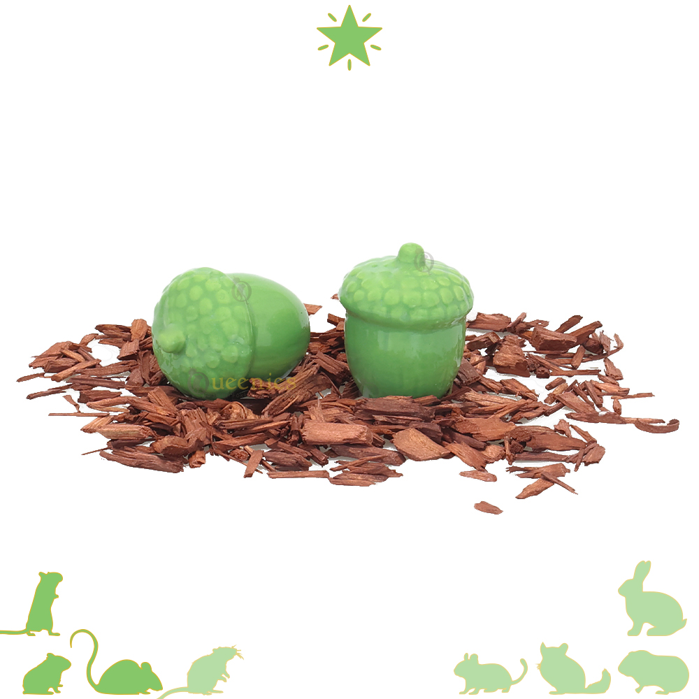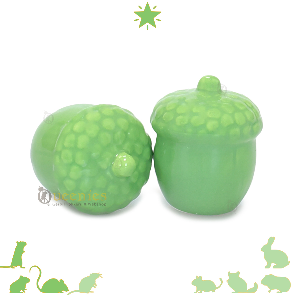 De eikel groen gemaakt van Keramiek en met een mooie afmeting van 5.5 cm hoogte biedt een natuurlijke en rustieke uitstraling die perfect is voor een herfst of bos themascape. Plaats deze eikel in je Goudhamster terrarium om een gezellige en natuurlijke omgeving te creëren