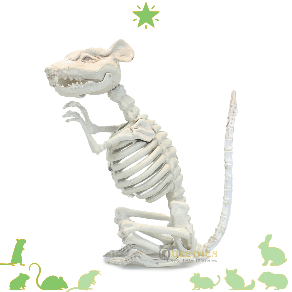 Dit Knaagdier Skelet 33 cm Het is een uniek Halloween Muizen Skelet voor een Griezelige Halloween Decoratie voor Hamsterscaping. Een speelse decoratieve toevoeging voor het Knaagdieren Terrarium. De griezelige en spookachtige uitstraling met een vleugje humor zorgt dat de Muis skelet in elk Terrarium thuis past. Niet alleen helpt de Muis skelet mee aan het creëren van een spannende en boeiende omgeving , maar het beeldje is ook visueel aantrekkelijk. Gemaakt van kunststof is het Muis skelet niet zomaar kapot te knagen, waardoor het perfect is voor Hamsterscaping.