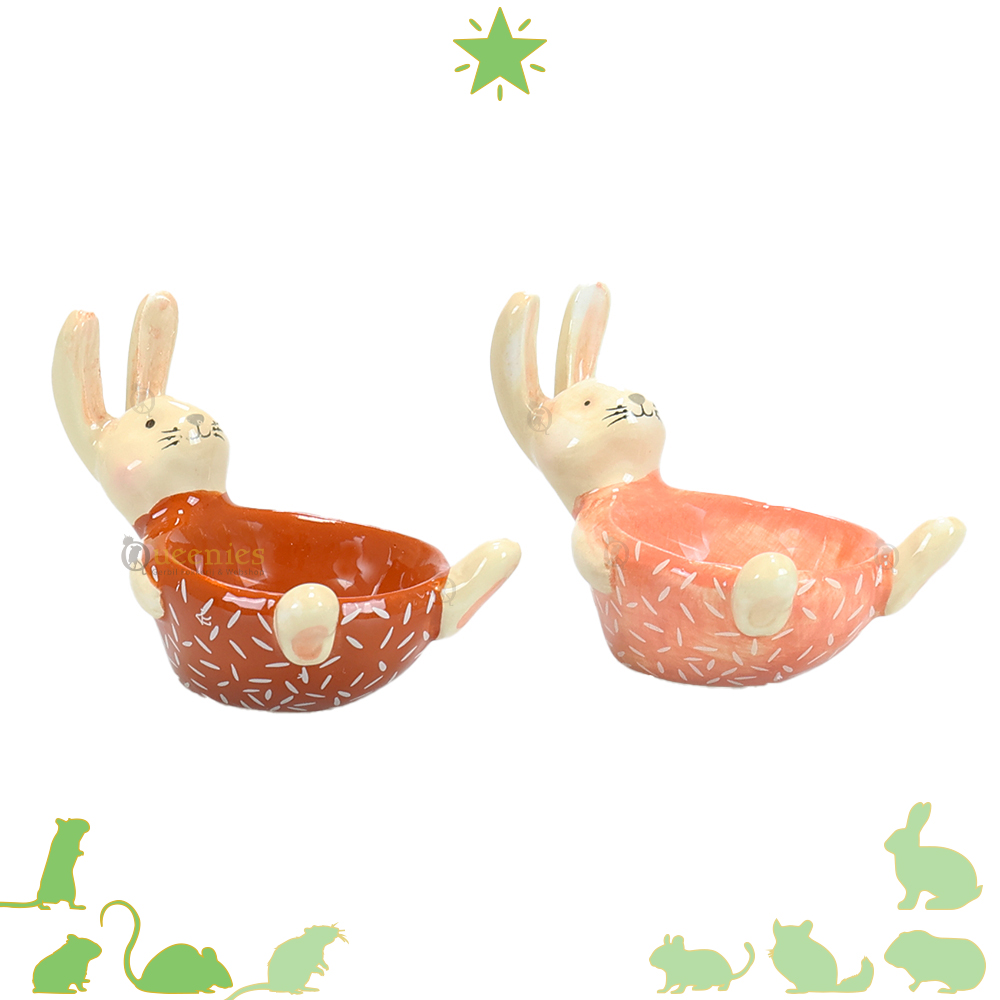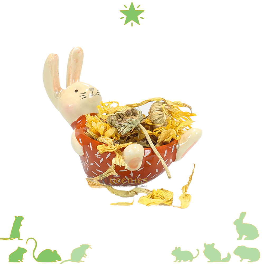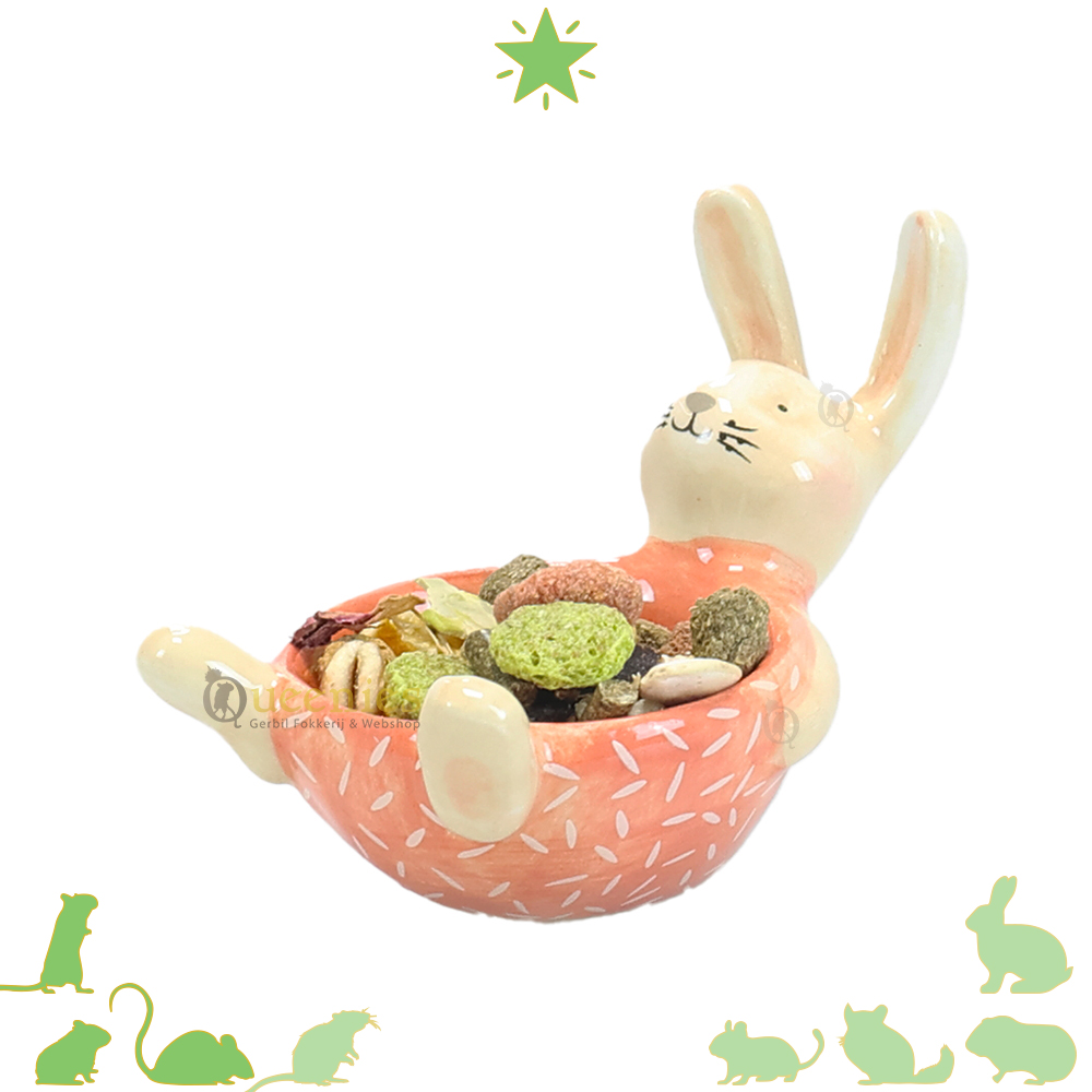 Hoewel deze Kruidenbak Konijn heet wilt dat niet zeggen dat het een Kruiden voor Konijnen is. Daar is deze voerbak voor dierenkruiden echt te klein voor. De Kruidenbak heeft een Konijn als ontwerp, maar is echt enkel geschikt voor kleine Knaagdieren zoals Hamsters, Gerbils en of Muizen. Deze voerbak kan mooi gebruikt worden om voedingssupplementen voor Hamsters of andere kleine knaagdieren in te doen. Het heeft een onwijs schattige uitstraling en past goed thuis in onze Hamsterscape decoratieartikelen pagina. Tijdens pasen kan je de voerbak even lenen van je furby kindje om de tafel feestelijk te dekken met deze kruidenbak als eierdopjes. ( Gratis tip )
