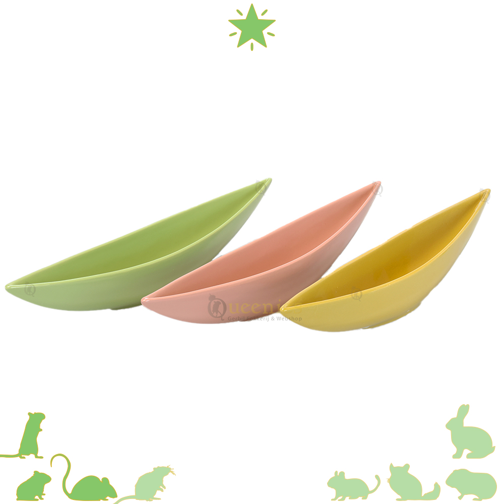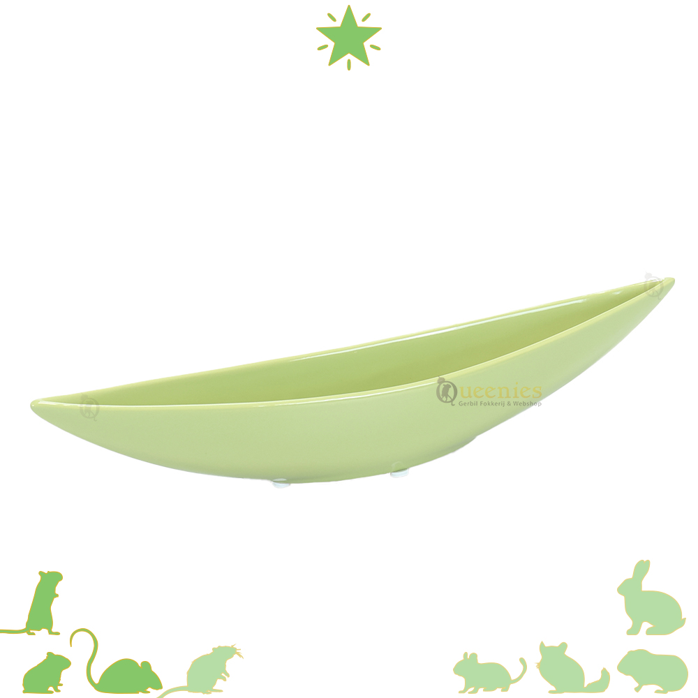 Onze chique Langwerpige badzandschaal is ideaal geschikt voor Hamsterscaping bij Knaagdieren, maar ook geschikt voor Konijnen en Cavia's om te gebruiken als kruidenbak of voerbak. Een handige Zandbak voor Gerbils en Hamsters, een chique voerbak voor Konijn en Cavia. Breng stijl en functionaliteit naar je hamsterscape met de prachtige langwerpige badzandschaal en kies je eigen favoriete kleur! Gemaakt van hoogwaardig keramiek, is deze schaal veelzijdig inzetbaar en geeft het altijd een mooie uitstraling aan het Goudhamster Terrarium. De zachte groene kleur past perfect in elke themascape, de gele is leuk tijdens Pasen en de Roze is altijd goed. Bijna alle meisjes houden tenslotte wel van roze. Het formaat is smal, maar wel lang. Dit geeft in de Hamsterscaping voldoende mogelijkheden.