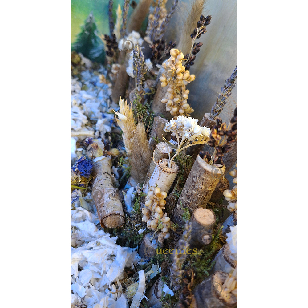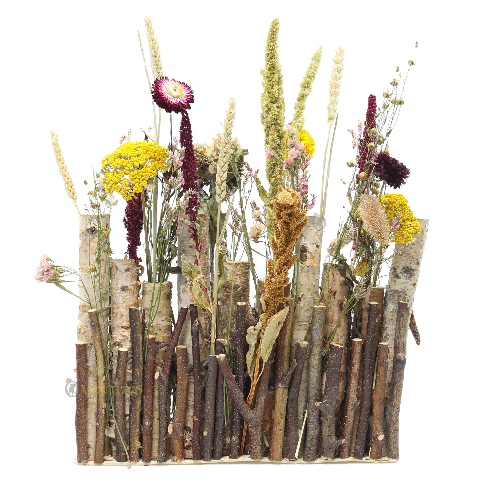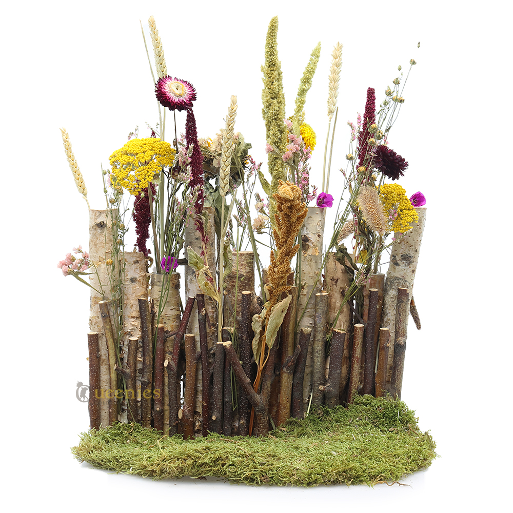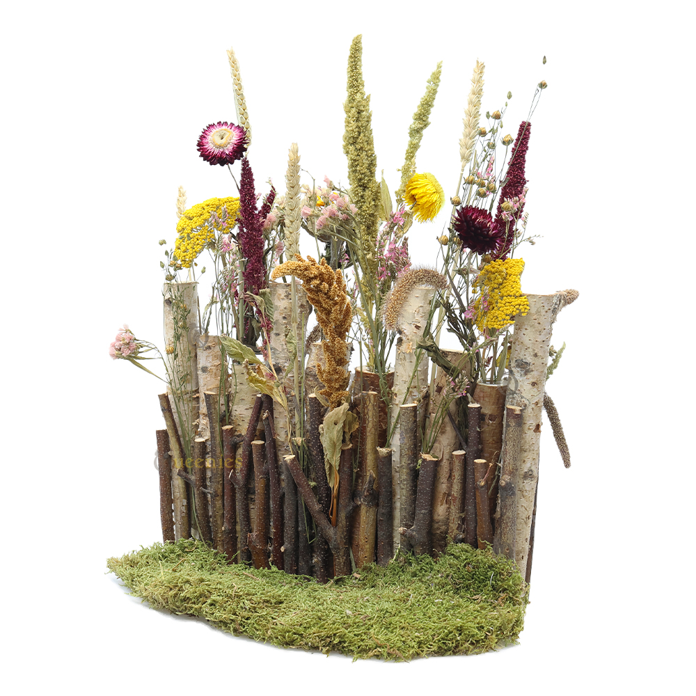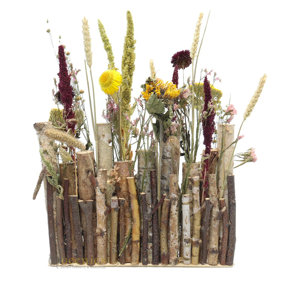 Wij adviseren de oogsthouder tegen de achterwand van het terrarium te plaatsen. Hierdoor ontstaat een mooie natuurlijke achterwand van prachtige droogbloemen in de kleur die jijzelf kies. Je kan de oogsthouder helemaal naar eigen smaak en wensen decoreren waarbij je altijd gebruik zal maken van verschillende kleuren en gedroogd terrarium mos.