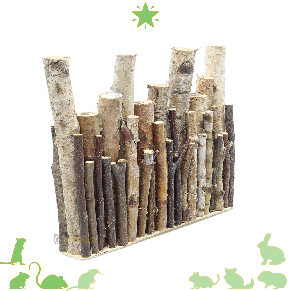 Het is ook mogelijk om echte hamsterplantjes in onze oogsthouder te zetten. Er zijn 3 berkentakken die gevuld zijn met een glaasje, hier kan je dan dus water in doen zodat je echt levende plant kan groeien.