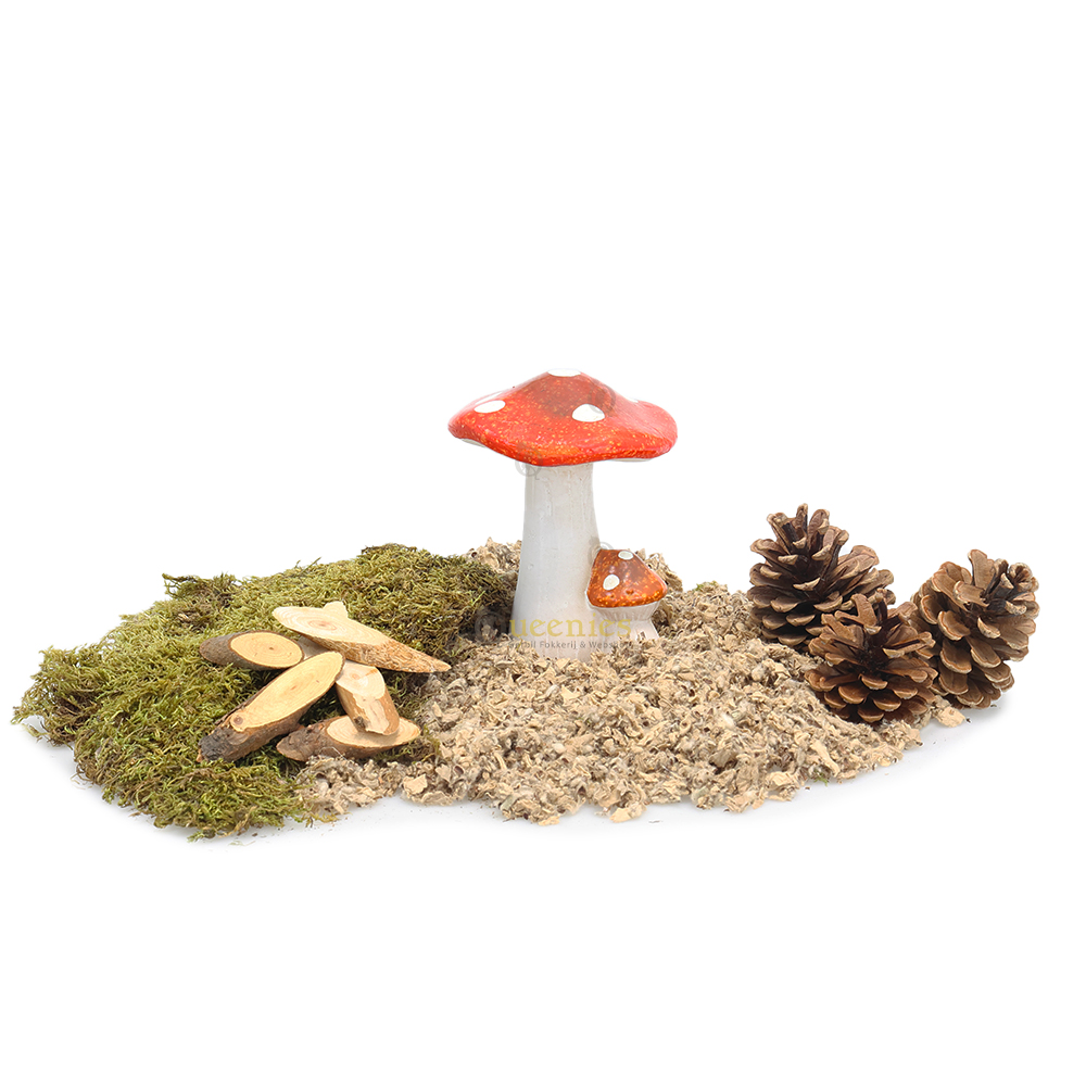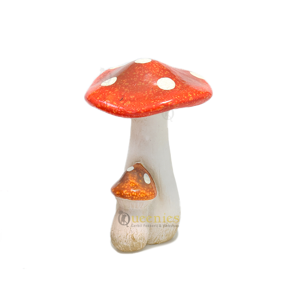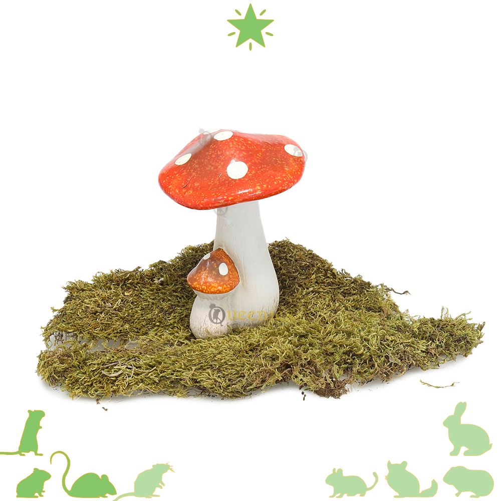 Deze stijlvolle rode Paddenstoel met witte stippen is een perfecte decoratieve toevoeging voor een Herfstige Hamsterscaping. De fel opvallende rode kleur zorgt dat de Paddelstoel in elke Hamsterscape eruit springt. De grote en kleine Paddenstoel zorgen voor een speelse uitstraling die perfect past bij een Herfst of bos thema. Gecombineerd met gedroogd mos of andere decoratieve Paddenstoelen kan er leuk plaatje worden gemaakt voor kleine Knaagdieren zoals, Gerbils, Hamsters en Muizen om doorheen te lopen.