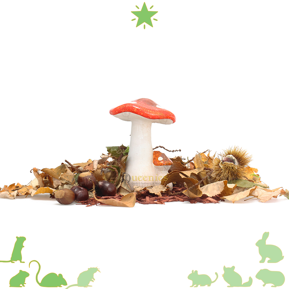De Stijlvolle Paddenstoel bied veel Hamsterscaping mogelijkheden. Of de Paddenstoel geplaatst wordt tussen takken, balderen of andere natuurlijke producten om een echt bosachtig Herfst thema te creëren. Of combineer de Paddenstoel met andere producten zoals bloemen of meer voor een kleurrijk sprookjesbos te gaan. Eigenlijk is alles mogelijk. Ook kunnen er leuke hoekjes in het Terrarium gemaakt worden voor Gerbils of Hamsters om van te genieten. Voegt met de Stijlvolle paddenstoel een vleugje natuur en fantasie toe aan je Hamsterscape.