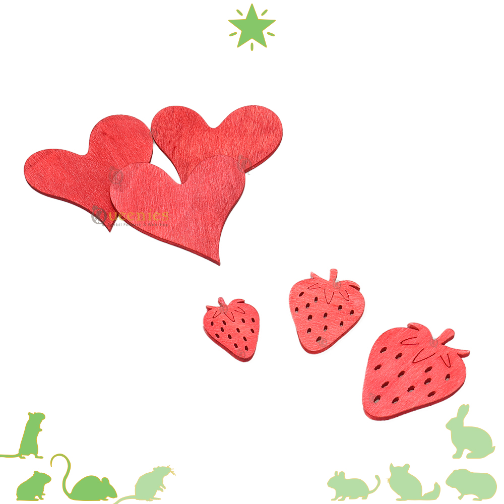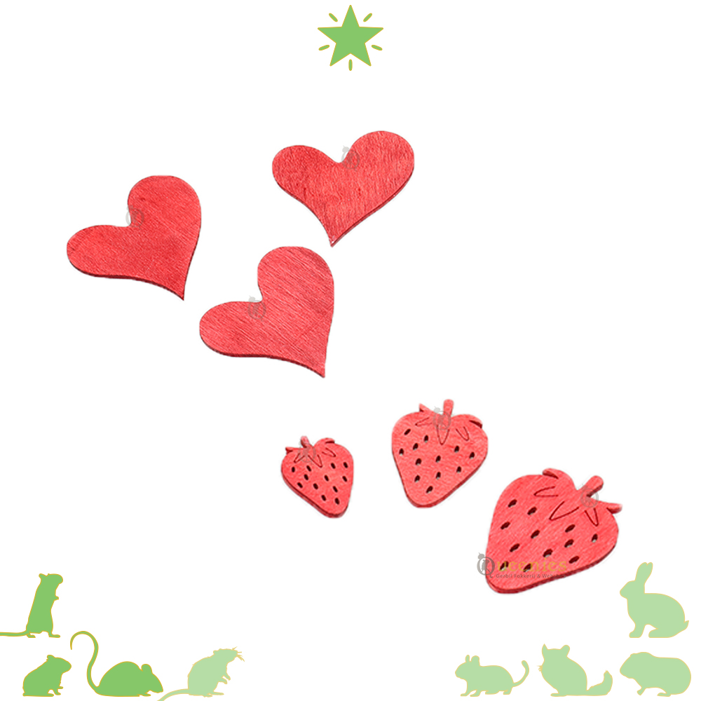 Inhoud Harten decoratie: 6 stuksInhoud Aardbei decoratie: 24 stuksAfmetingen Harten decoratie: 5 x 3 cm ( L x D x H ) Afmetingen Aardbei decoratie: Verschillende afmetingen in 1 doosje. van kleine tot grotere aardbeien. van 1 tot 3 cm grootte.Materiaal: Gekleurd houtGeschikt voor: Hamsterscaping│Decoratieartikelen | Valentijn Hamsterscape