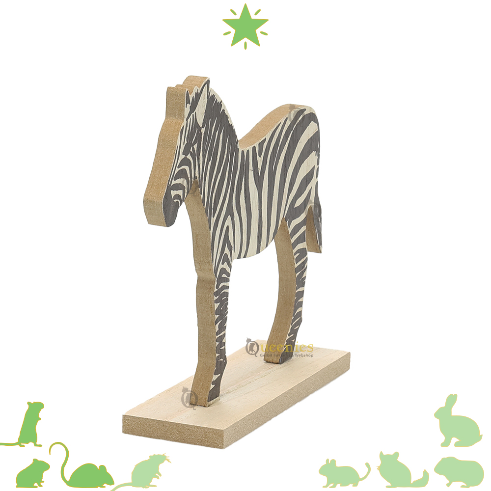 Breng de wilde schoonheid van Afrika naar je Hamsterscape met deze Zebra decoratie. De Houten Zebra voegt een exotisch en avontuurlijk element toe aan een Jungle of Savanne Hamsterscaping die je gebruikt bij themascape. Perfect voor jungle, Steppe, Savanne of dierentuin (Zoo) thema's, De Zebra decoratieve figuur vangt de essentie van de Afrikaanse wildernis.