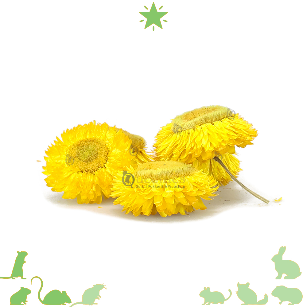 Op zoek naar een natuurlijke en sfeervolle toevoeging aan het verblijf van je hamster? Decoratie Bloem 3 Stuks brengt een levendige en warme uitstraling in je hamsterscape! Deze prachtige, gedroogde bloemen hebben een intense gele kleur en passen perfect in een natuurlijk ingericht Terrarium. Dankzij hun stevige structuur blijven ze lang mooi en zorgen ze voor een speels effect in het verblijf van je hamster of gerbil.