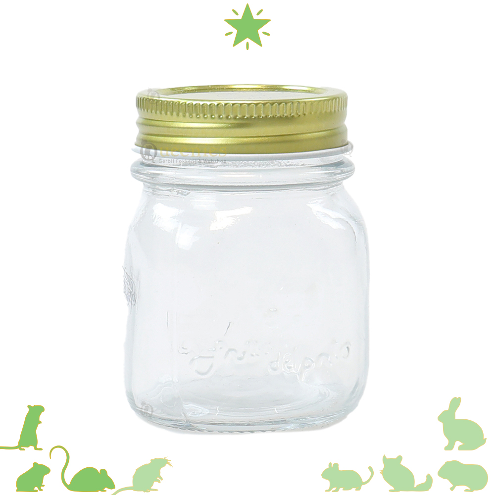 Inhoud: 1 glazen potje met metalen schroefdeksel