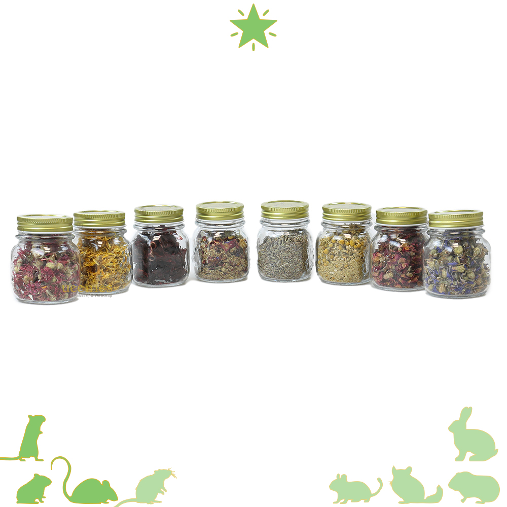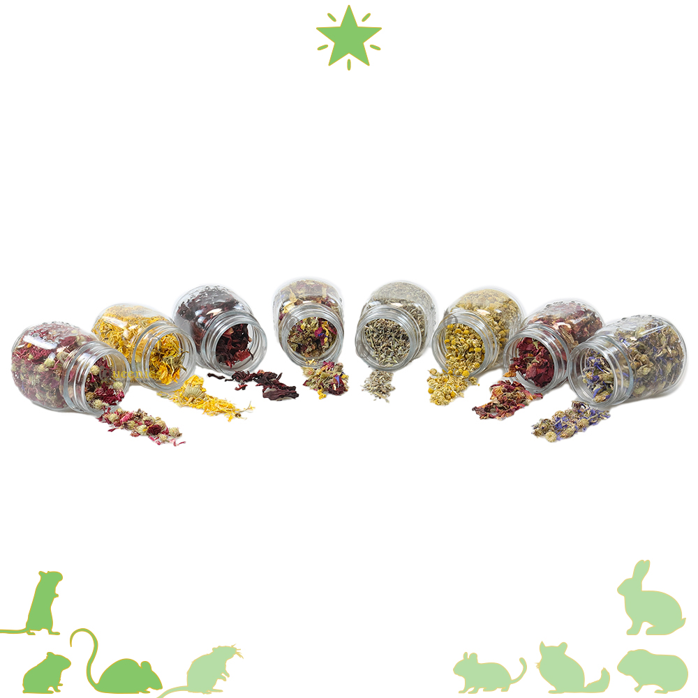 Hoewel het potje leeg wordt geleverd, zijn er volop mogelijkheden om het naar wens te vullen. Op onze website vind je losse bloemen en granen zoals goudsbloemen, hibiscus, rode rozenbloemen, bloemenmix deluxe, lavendelbloemen, kamillebloemen, een standaard bloemenmix, korenbloem blauw, korenbloem rood en de Groene Gezondheid Mix Knaagdier. Elk van deze soorten geeft het potje zijn eigen sfeer, van kleurrijk en speels tot rustig en natuurlijk. Op de foto’s is terug te zien dat deze bloemen zijn gebruikt in de potjes.