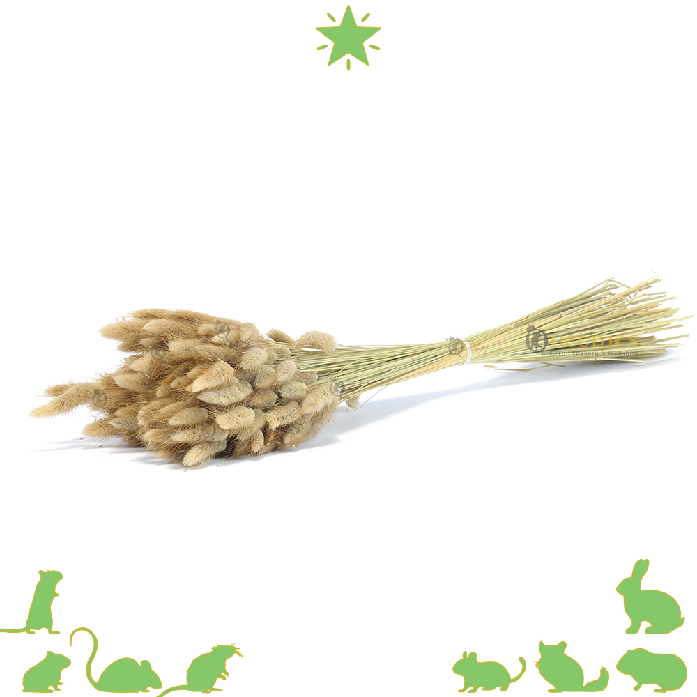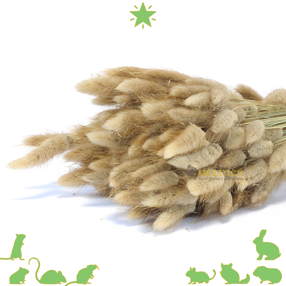 De mooie Hazenstaart Oogst 100 gram is een verwennerij voor ieder dier. Het geeft veel Knaagplezier voor Knaagdieren en Vogels. De bijzondere textuur en de frisse smaak van de Hazenstaart zal ieder dier hier blij van worden wanneer het wordt aangeboden. De Hazenstaart zijn kleine pluimjes en hebben een unieke en interessante smaakbeleving bij een Knaagdier, maar ook bij Konijnen en Vogels.