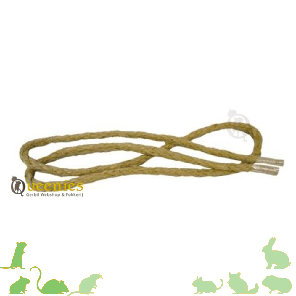 Het henneptouw is gemaakt onbehandeld hennepvezels. Uit het touw kunnen kleine draden worden getrokken en zo kan een eigen, warm nest worden gebouwd, maar meer is het geschikt om producten aan te hangen voor een leuke uitstraling in uw Hamsterscape. Denk bijvoorbeeld aan koekhappen voor Knaagdieren en Konijnen met natuurlijke ingredieten bevestigd aan dit Henneptouw.