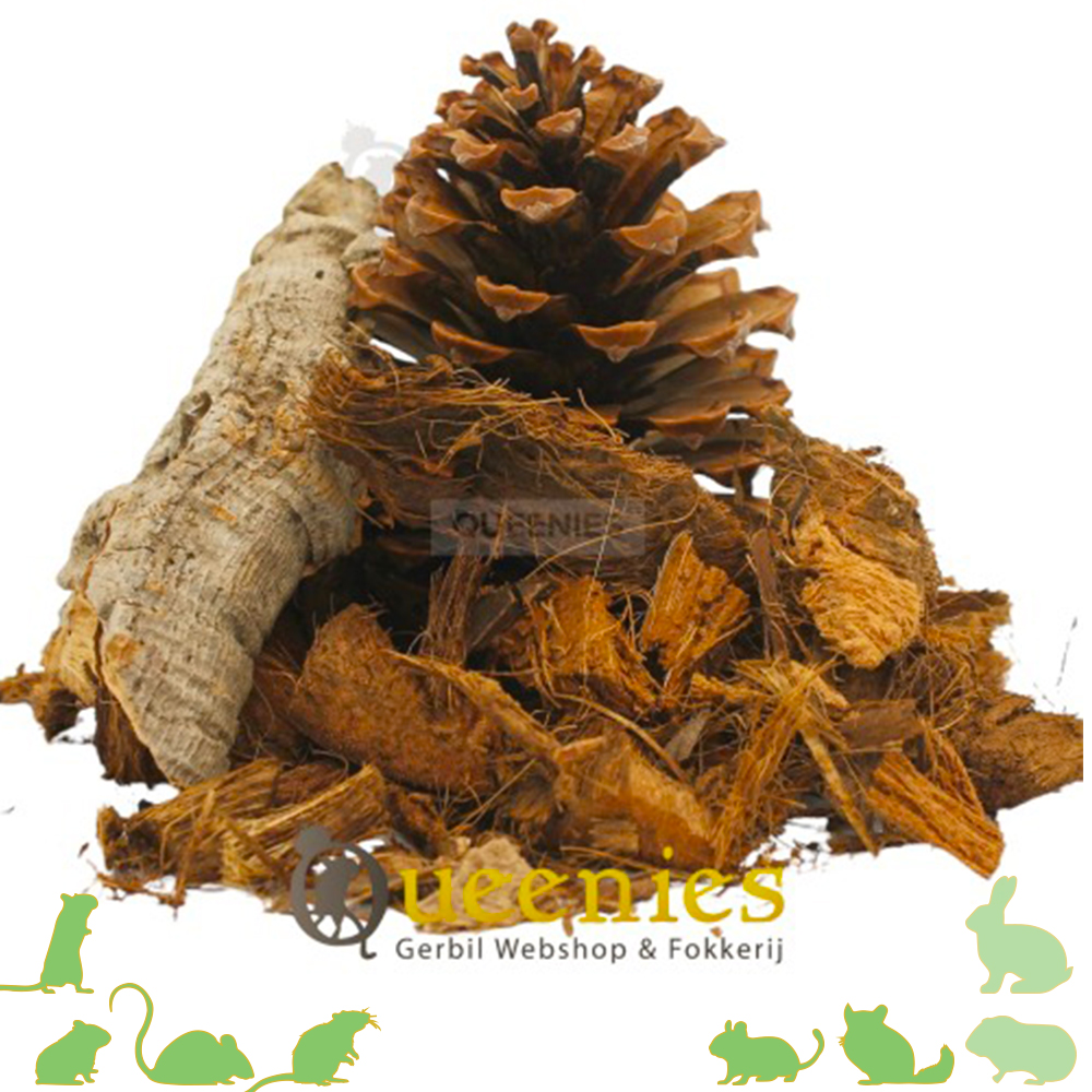 Een mooi zakje herfstfestijn mix. Wat ons betreft onmisbaar om een mooie natuurlijk leefomgeving te creëren voor uw knaagdiervriendje(s). De herfstfestijn mix bevat wat kurk, kokos en dennenappel(s). Wanneer er grote denneappels zijn heeft de mix 1 dennenappel, wanneer de denneappels klein uitvallen zullen er meer in de mix gedaan worden door ons.