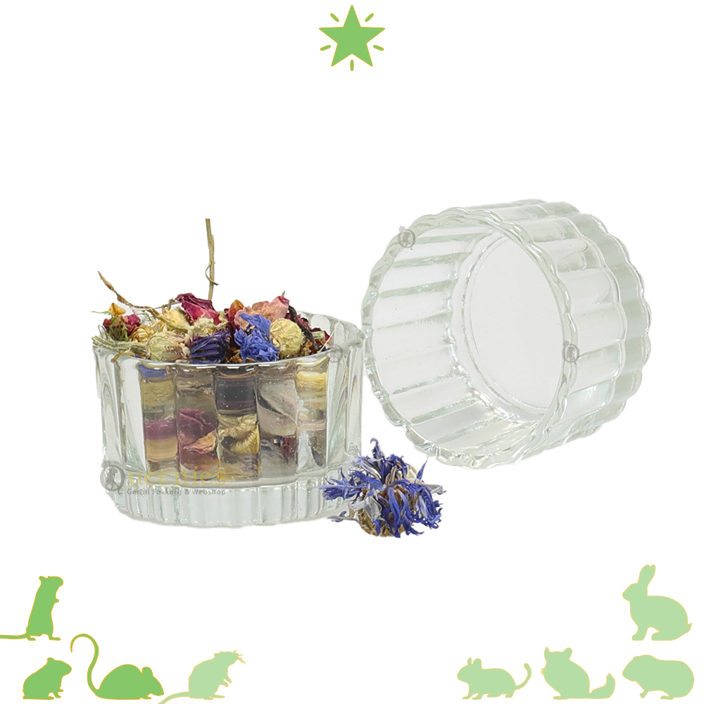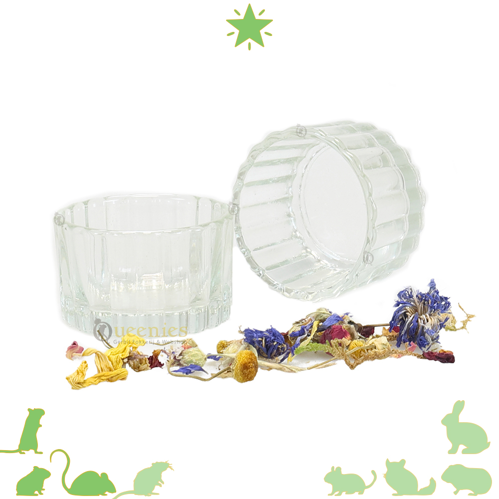 Deze glazen Kruidenbak of Drinkbakje is een veelzijdige en functioneel product voro kleine Knaagdieren. Het is toevoeging voor het verblijf die elegant is maar ook ontzettend handig om er hier verschillende van te hebben. Met zijn glazen geribbelde ontwerp past het perfect in elke setting terwijl het tegelijkertijd functionaliteit biedt. Het glazen materiaal zorgt ervoor dat het bakje gemakkelijk schoon te maken is en bestand is tegen knagen. Vul het met een mix van smakelijke kruiden zoals zonnebloemblaadjes, bloemenmix of andere Knaagdierkruiden om de hamster, muis of gerbil te verwennen. Het kan ook gebruikt worden ls een drinkbakje om altijd vers water beschikbaar te hebben.