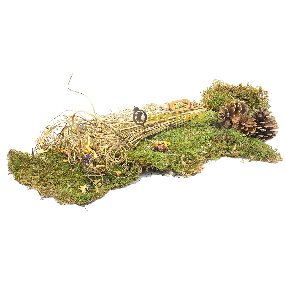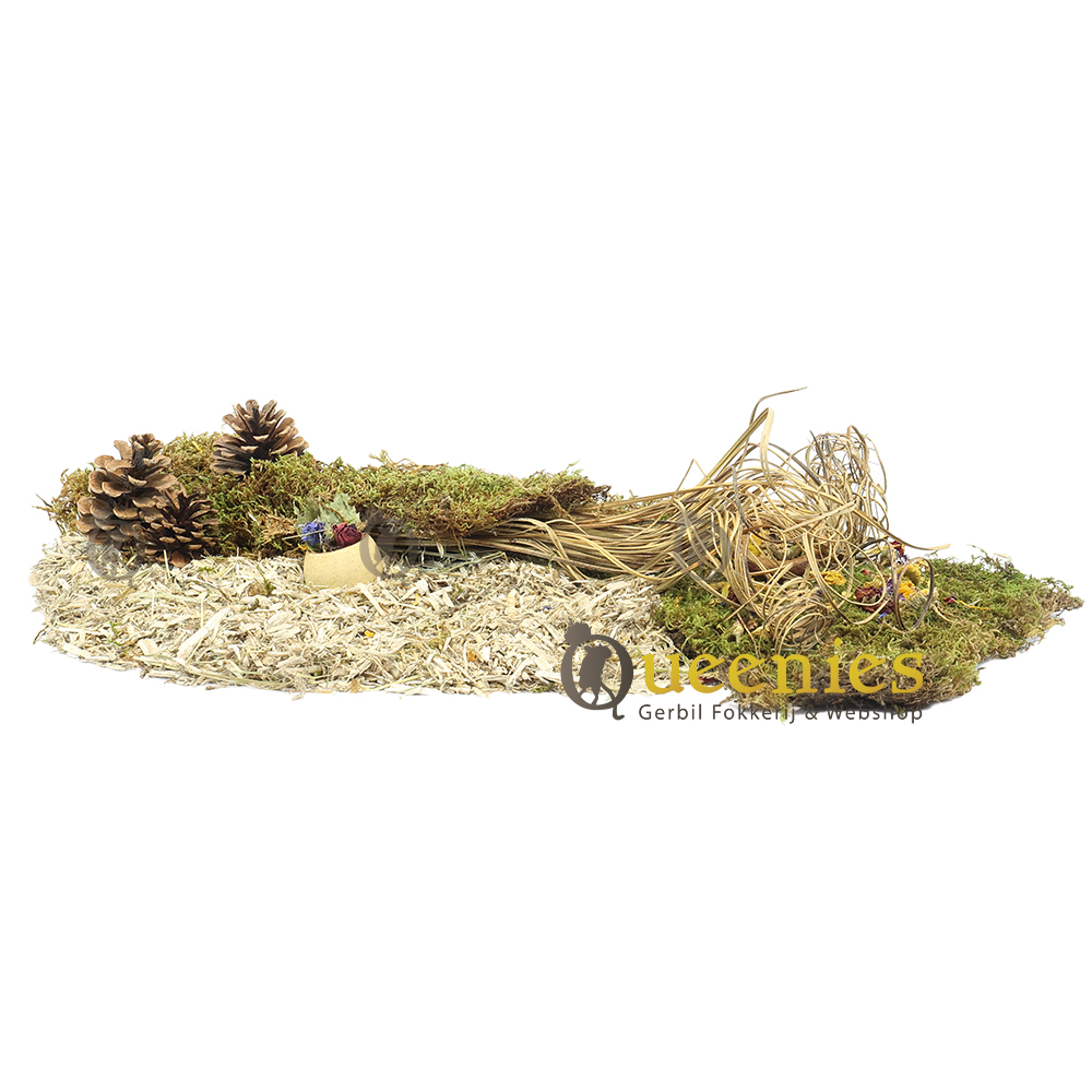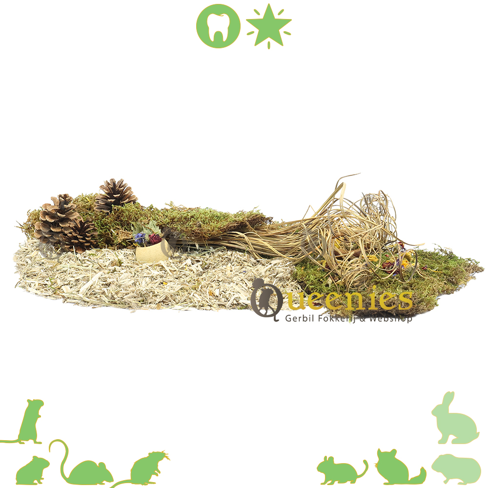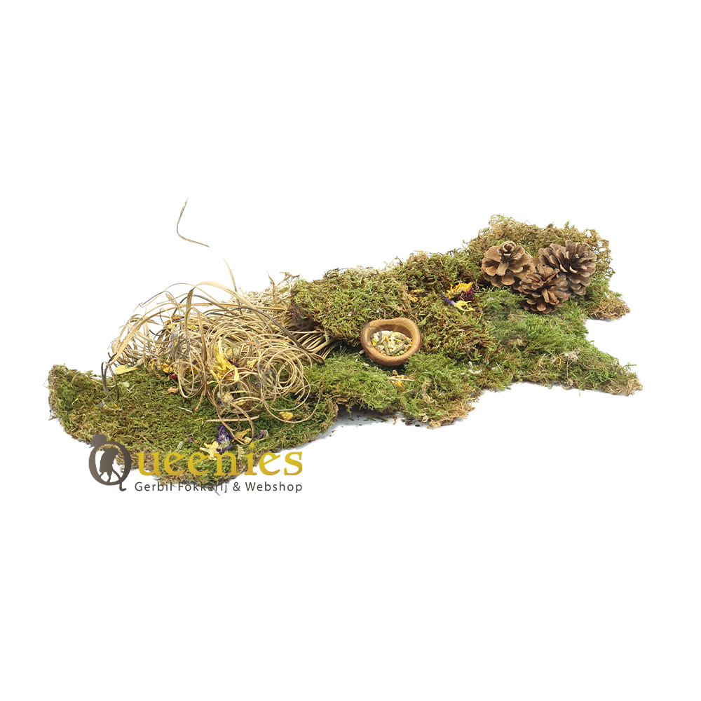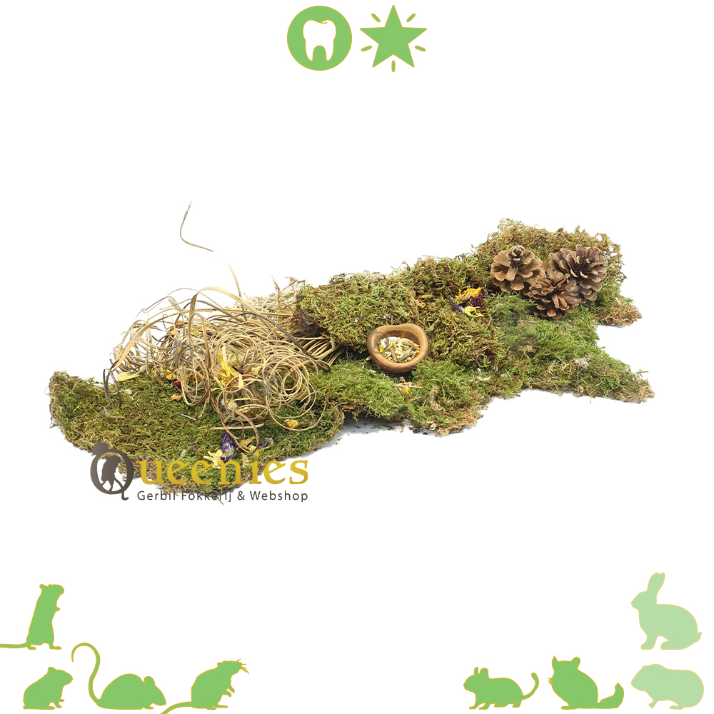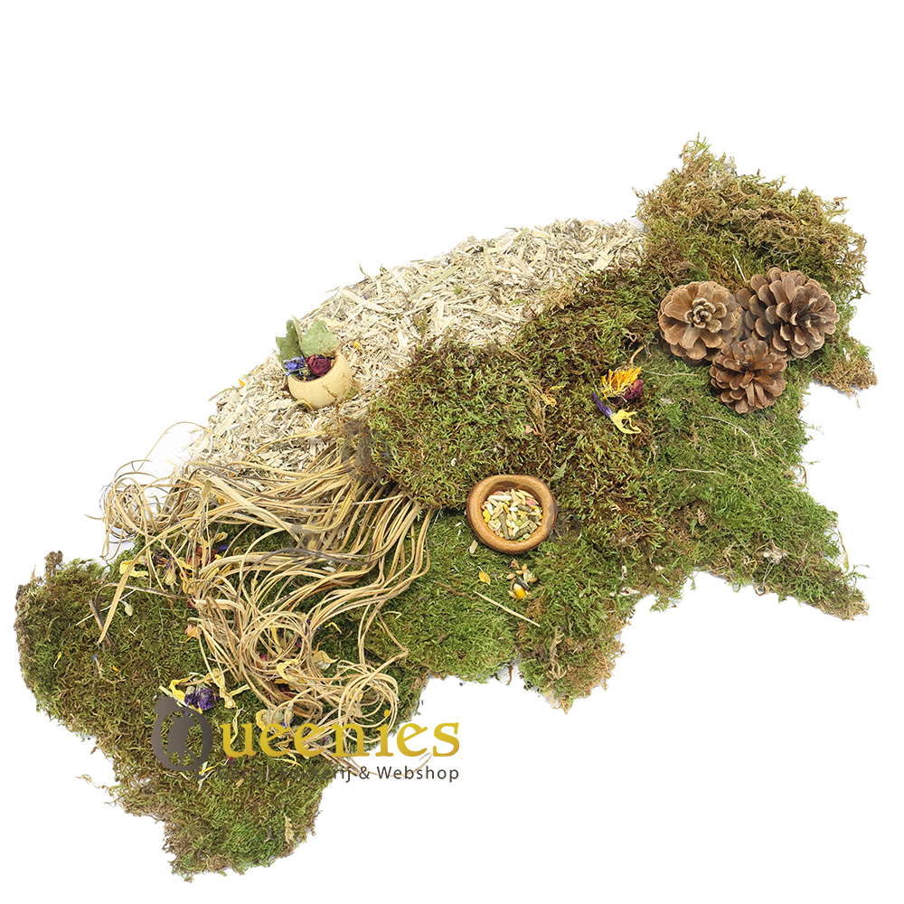 In eerste instantie ben je wellicht geneigd om het rechtop te zetten. Natuurlijk is dat erg leuk wanneer de gekrulde uieindes dan versiert worden met Gedroogd Terrarium mos voor Knaagdieren.