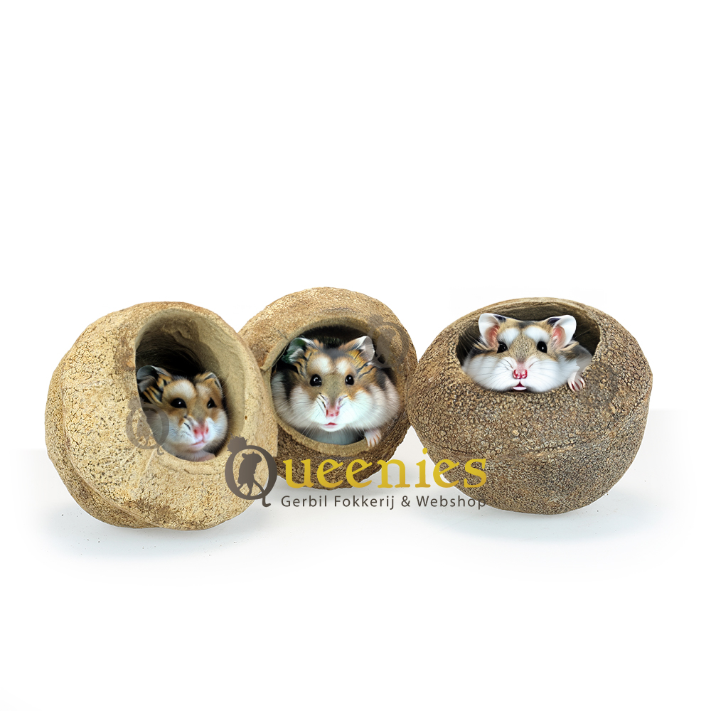 Dit Hamster Hut is een grote natuurlijke noot. Een heerlijke schuilhut voor hamsters en gerbils. De noot is hard en biedt een mooie schuil of slaapplek.