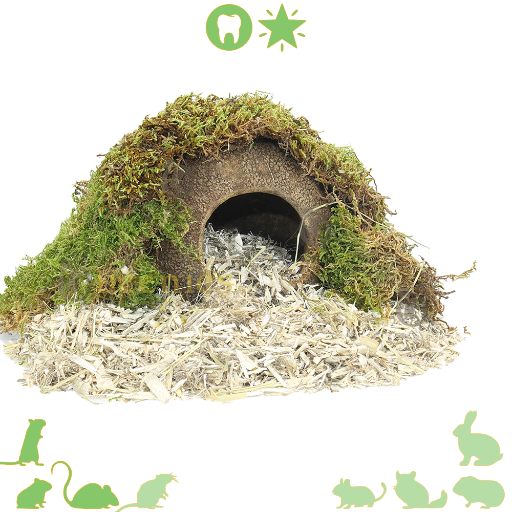 Dit slaaphuisje voor knaagdieren wijkt ook weer af van de traditionele knaagdierhuisjes en of kokosnoten die veel gebruikt worden in nature look bij hamsterscaping of gerbilscaping.
