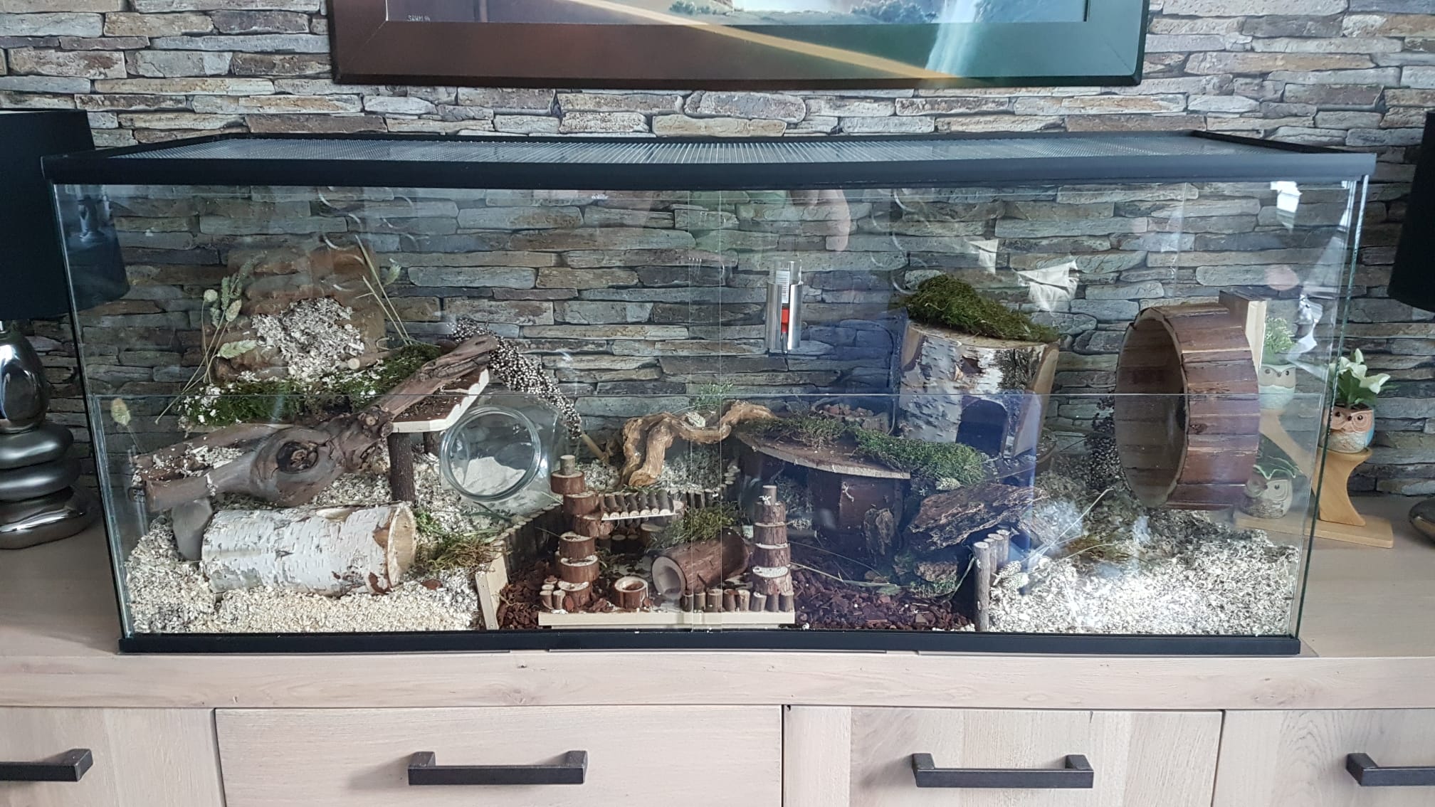 Een kleine hamsterkooi is namelijk snel gevuld en kunt u weinig kanten mee uit. Een groot terrarium daarintegen kunt u eindeloos varieren en mooi inrichten met hamsterspeelgoed.