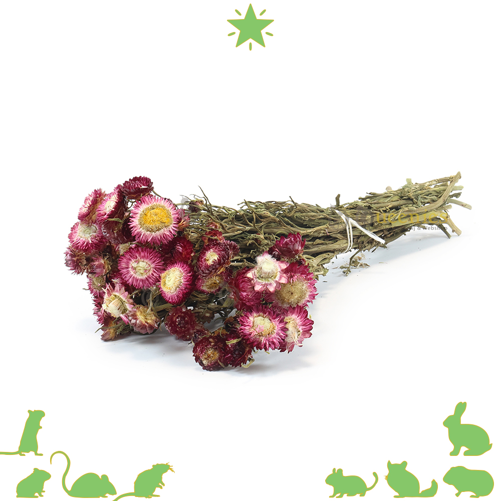 De Violet Strobloem 40 cm is een ware Bloemen verrijking voor iedere Hamsterscaping! De bos bloemen is groot en prachtig mooi! Met zijn diep rode paarse bloemen is dit dé bloem die je gebruikt voor het aankleden van de Hamsterscape. De knop kan je er gemakkelijk afbreken en zo her en der in het Hamster terrarium neerleggen ter verrijking of decoratie. Deze Strobloem wordt al jaren gebruikt in Knaagdierenland. JR Farm was de eerste die hiermee begon. Inmiddels is de Violet Strobloem een veel gebruikte bloem voor de echte scapers die gaan voor een natuurlijke uitstraling!