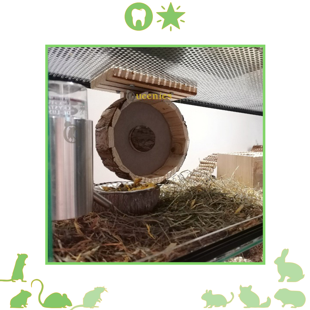 De bevestingsmogelijkheden van het Houten Renrad voor Gerbils