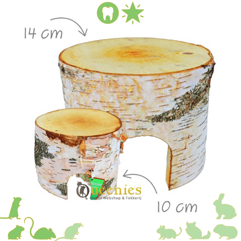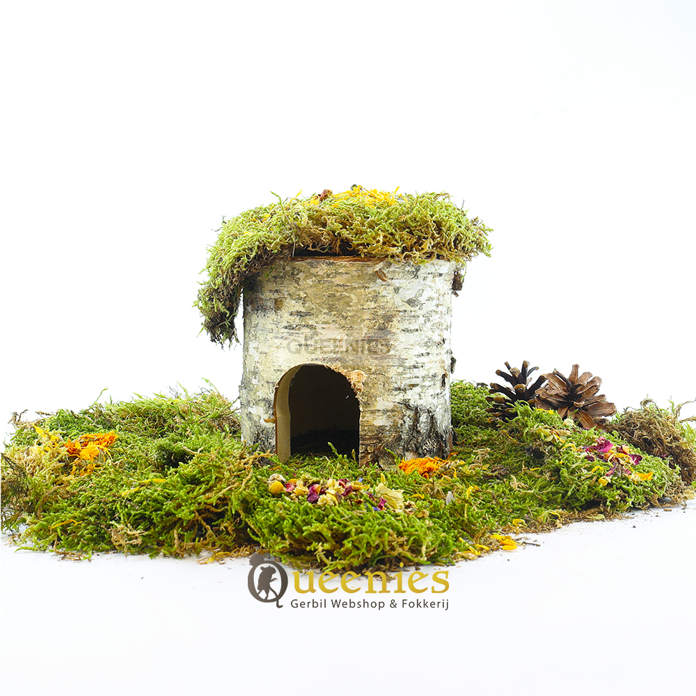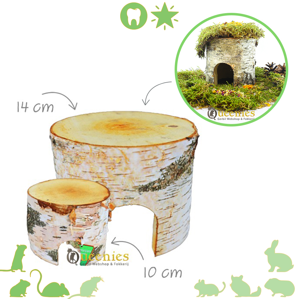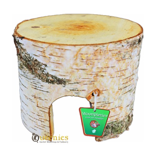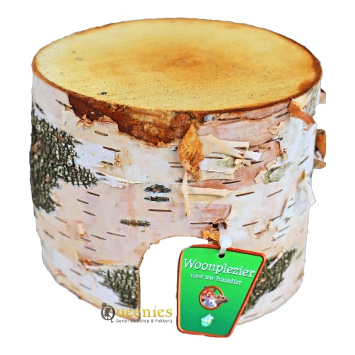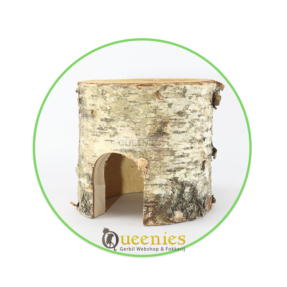 Het ronde Knaagdieren berkenhuisje is voorzien van een ruime opening. Het huisje is enkel gemaakt van Berkenhout zonder spijkers of lijm. Er werd een dikke boomstam gebruikt, half uitgehold en een opening uitgezaagd. Dat maat dat dit huisje van 100% veilig is doordat er enkel gebruik is gemaakt van natuurlijke materialen / hout.