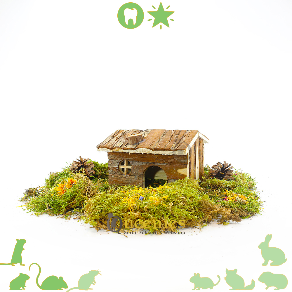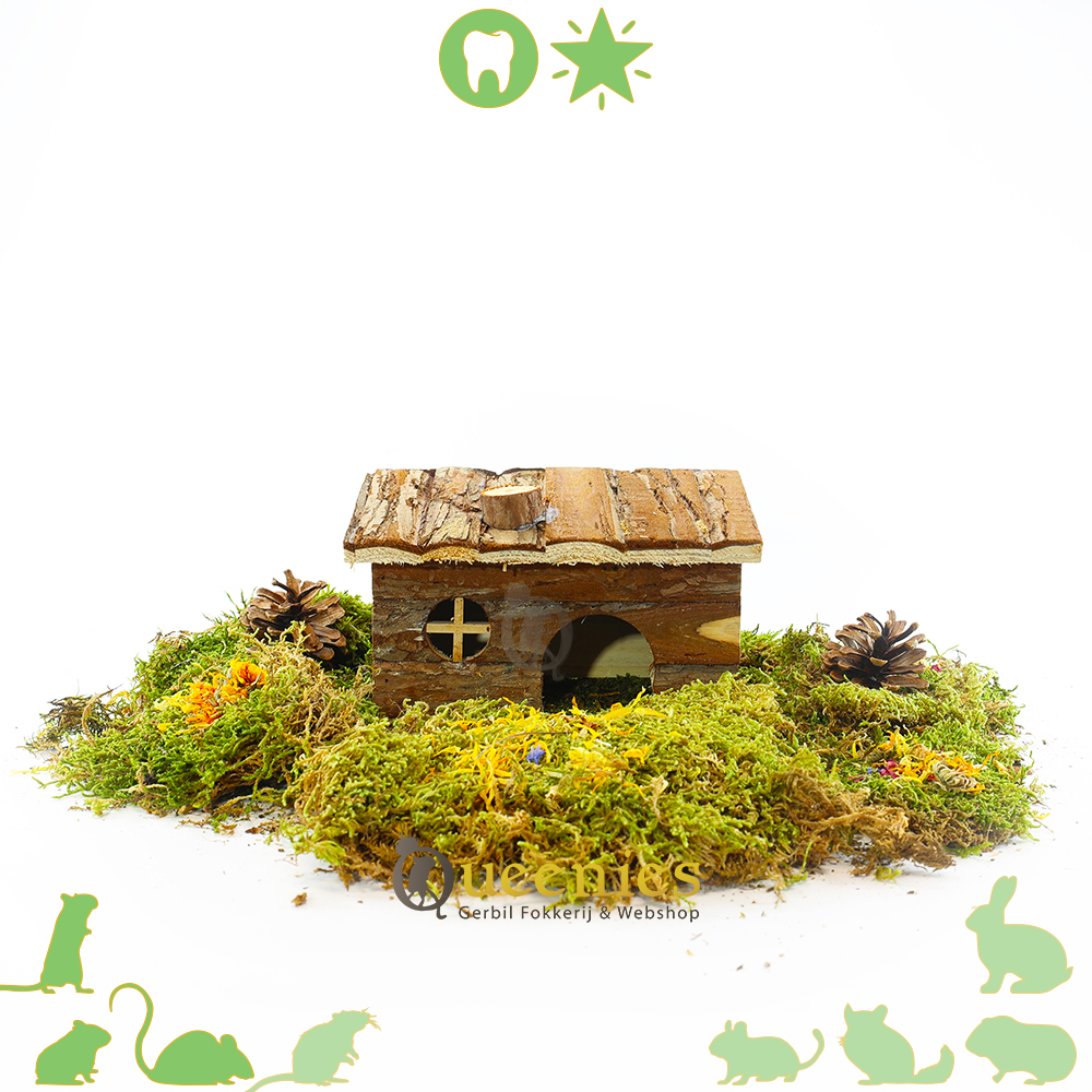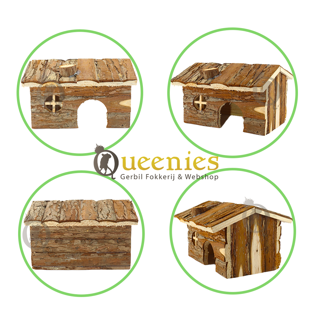 Afmeting: ( L x B X H ) 20 x 13 x 13 Hoogte is 13 cm Materiaal: Natuurlijk schorshout Geschikt voor: Gerbils, Dwerghamsters, Muizen