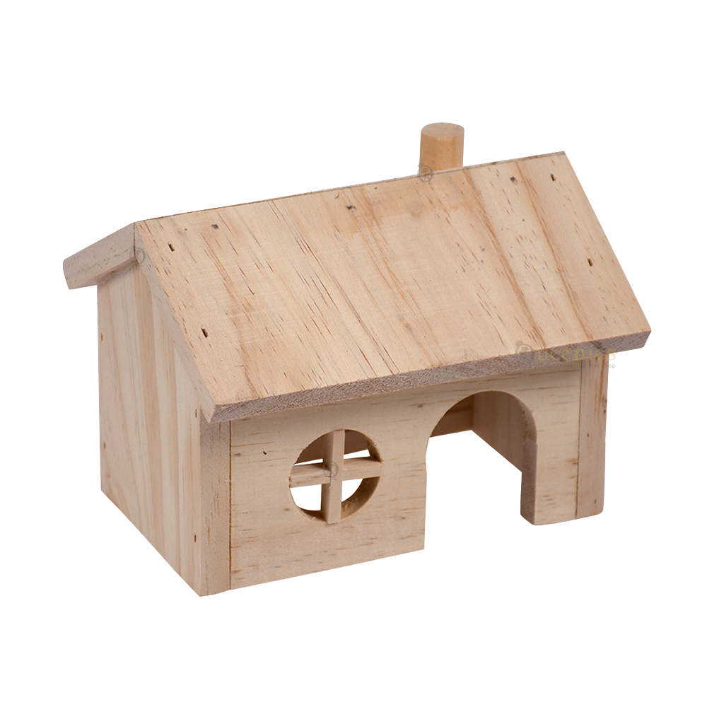 Boerderij huisje Hendrik Blank 15 cm – Houten hamster huisje met natuurlijke uitstraling