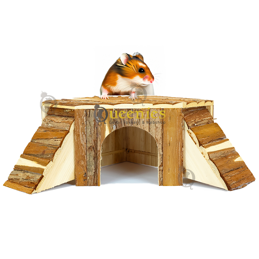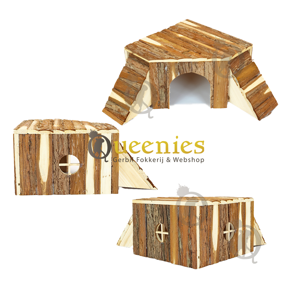 Een Hoekhuis waar kleine en grotere knaagdieren in kunnen schuilen, slapen en op kunnen klimmen. Het is een zeer praktisch en functioneel hoekhuis dat op meerdere mogelijkheden gebruikt kan worden en efficiënt in elke hoek van het knaagdierenverblijf geplaatst kan worden.