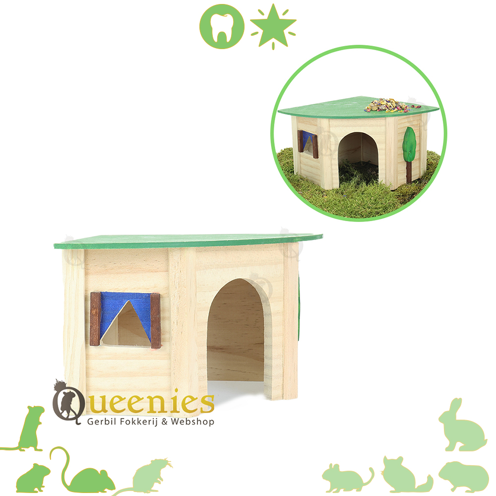 Afmetingen: 27 x 18,5 x 13 ( L x B x H ) Materiaal: Hout Geschikt voor: Knaagdieren zoals Gerbils, Dwerghamsters, Goudhamsters en Muizen