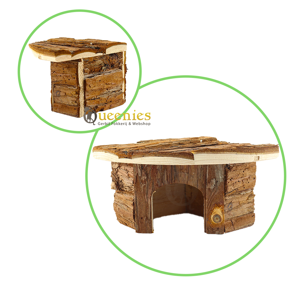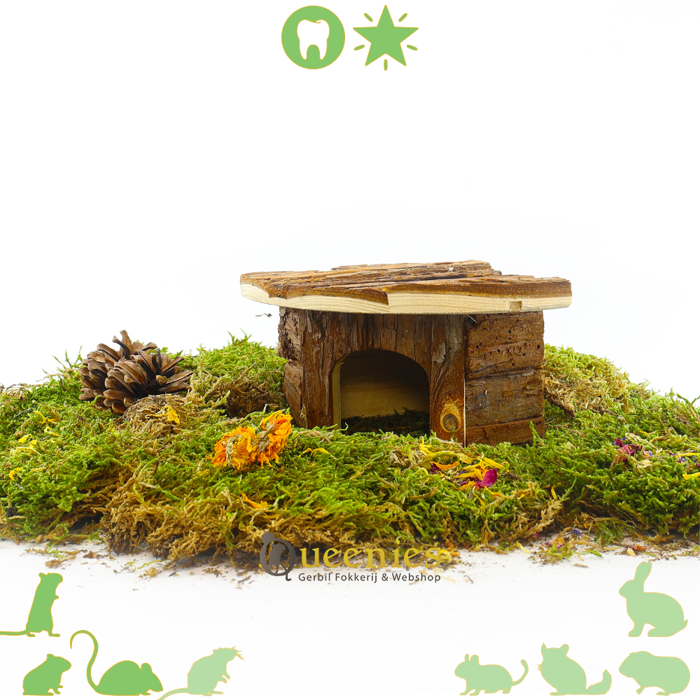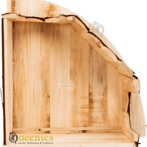 Hoekhuis Jesper klein 21 cm schittert van eenvoud en efficientie. 'Less is more' kent u vast wel, die uitspraak is bij uitstek geschikt voor Hoekhuis Jesper 21 cm. Door de vorm is dit huisje perfect om in een loze hoek te plaatsen. Een beetje aangekleed met gedroogd terrarium mos geeft direct een prachtig resultaat. Gebruikt u meerdere natuurlijke producten zoals kurk en gedroogde knaagdier grassen zijn de eerste stappen in uw hamsterscaping of gerbilscaping gemaakt! Wederom weer een veelzijdig knaagdierhuisje met ligplaats op het dak. Dit geeft u de mogelijkheden om daar water of voerschalen neer te zetten. Ook kan het enkel als dakterras dienen. Een plek om te genieten voor uw knaagdier. Gemaakt van natuurhout, veilig voor gerbils en andere knaagdieren.