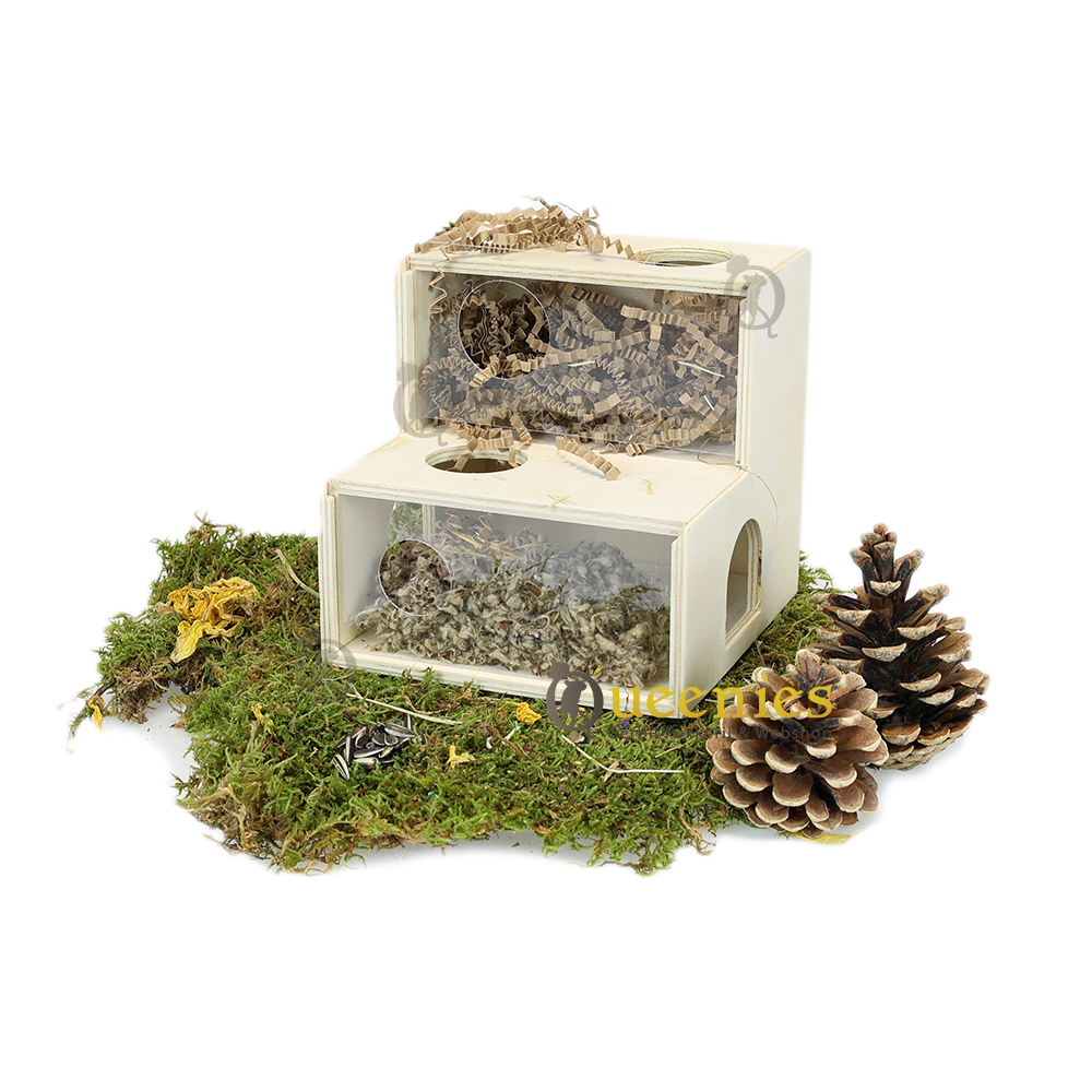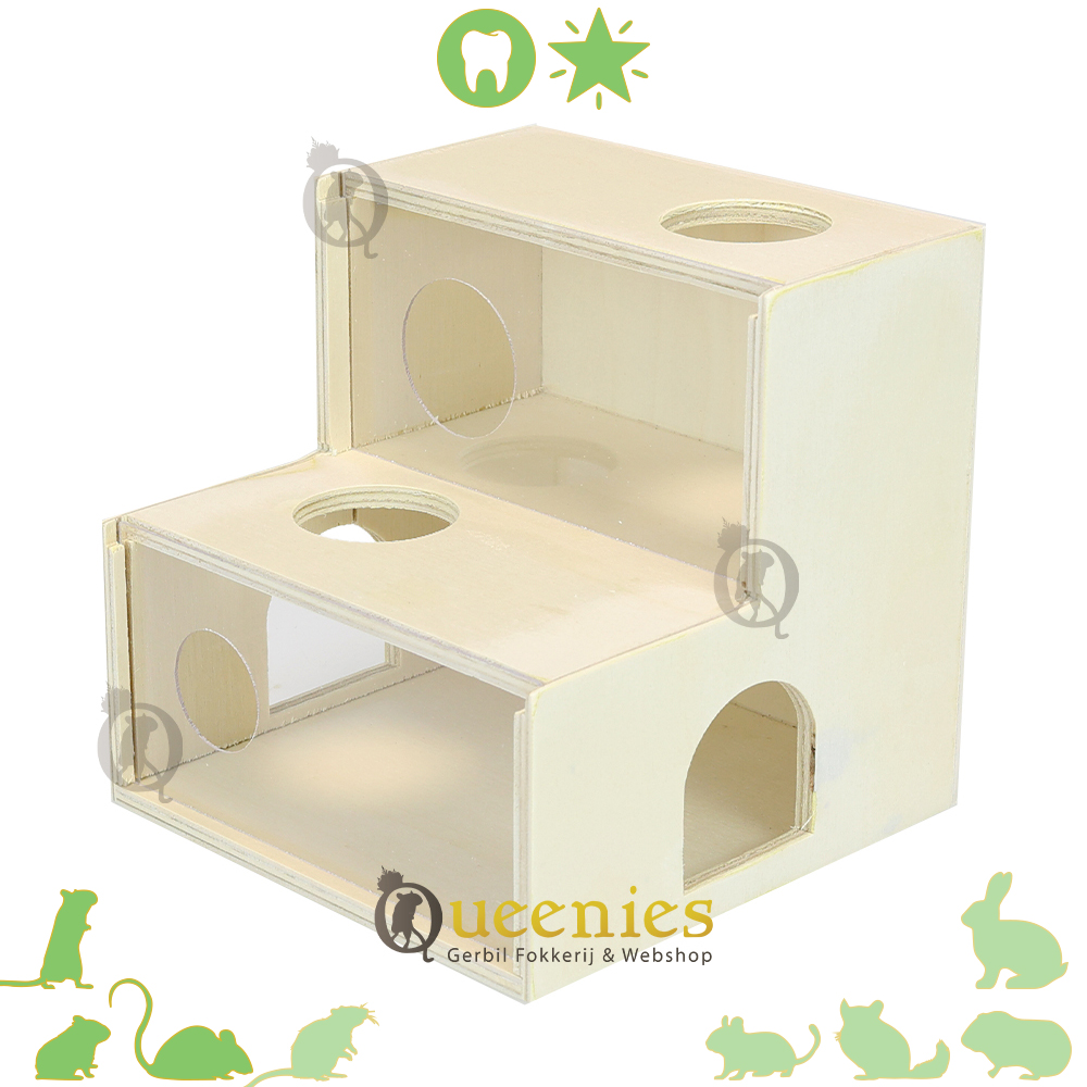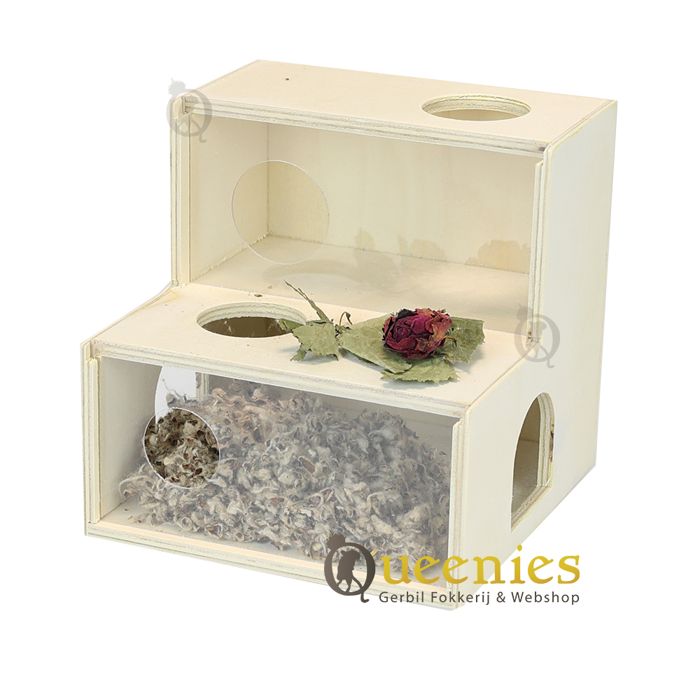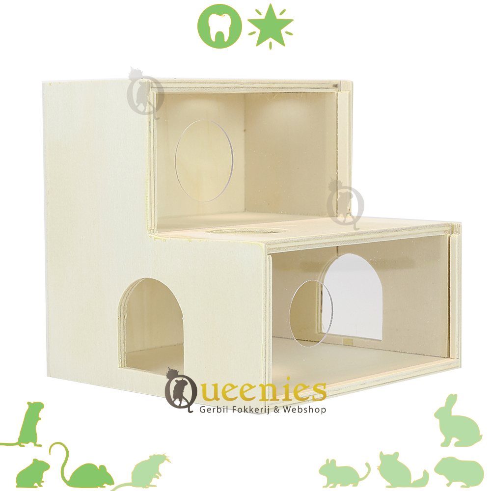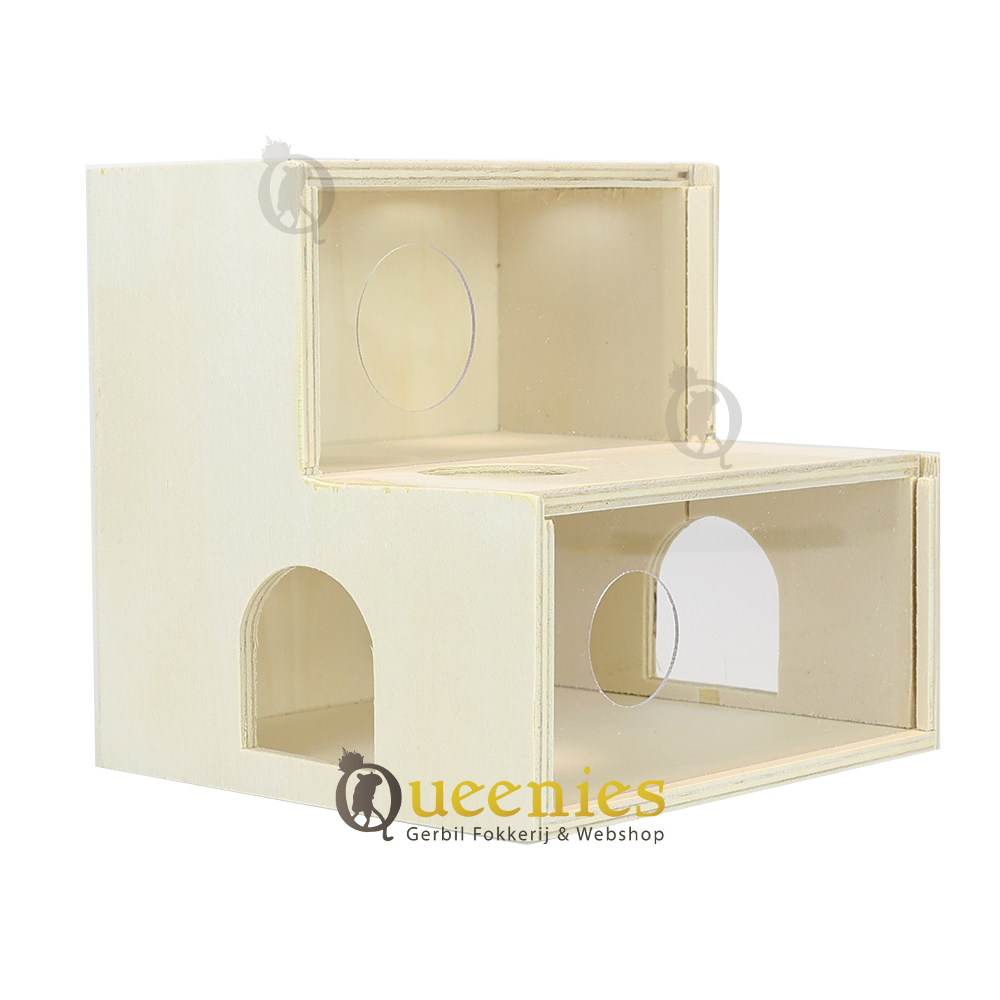 Dit Houten Knaagdierenhuis biedt u de mogelijkheid om uw huisdier optimaal te observeren door de grote ramen in dit Gerbilhuis. De grote ramen zitten in zowel de onderverdieping als in de bovenverdieping. Beide verdiepingen zijn bereikbaar via meerdere openingen. Het plexiglas biedt optimale mogelijkheden om goed zicht te krijgen in het houten Knaagdierenhuis. Deze plexiglasplaatjes zijn eruit te halen. Super multifunctioneel huisje voor Knaagdieren zoals Gerbils, Dwerghamsters en Muizen.