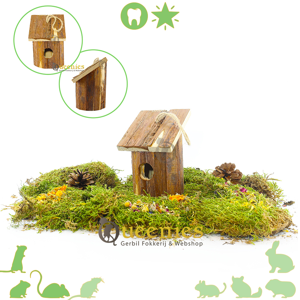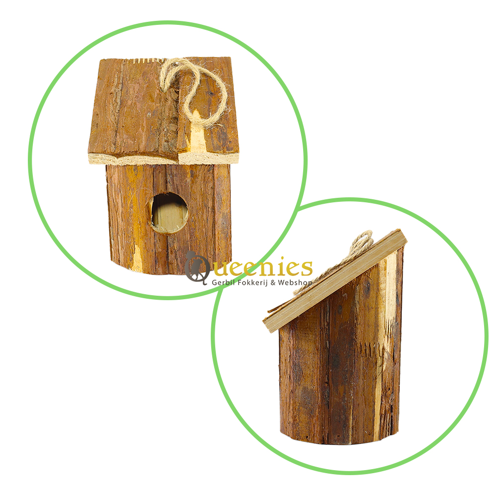 Dat het een Broedhuis is voor vogels staat als omschrijving omschreven bij de leverancier. Maar natuurlijk kan het ook leuk in een Terrarium / Gerbilarium geplaatst worden, zeker als u wilt Hamsterscapen. Het Huisje heeft een natuurlijke uitstarling waardoor het in iedere Hamsterscaping van mooie toegevoegde waarde zal zijn.