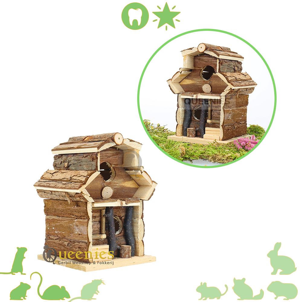 Afmetingen: 15 x 15 x 22 cm ( L x B X H ) Materiaal: Natuurlijk schorshout Geschikt voor: Gerbils, Dwerghamster, Roborovski, Muizen en kleine vogels zoals parkieten
