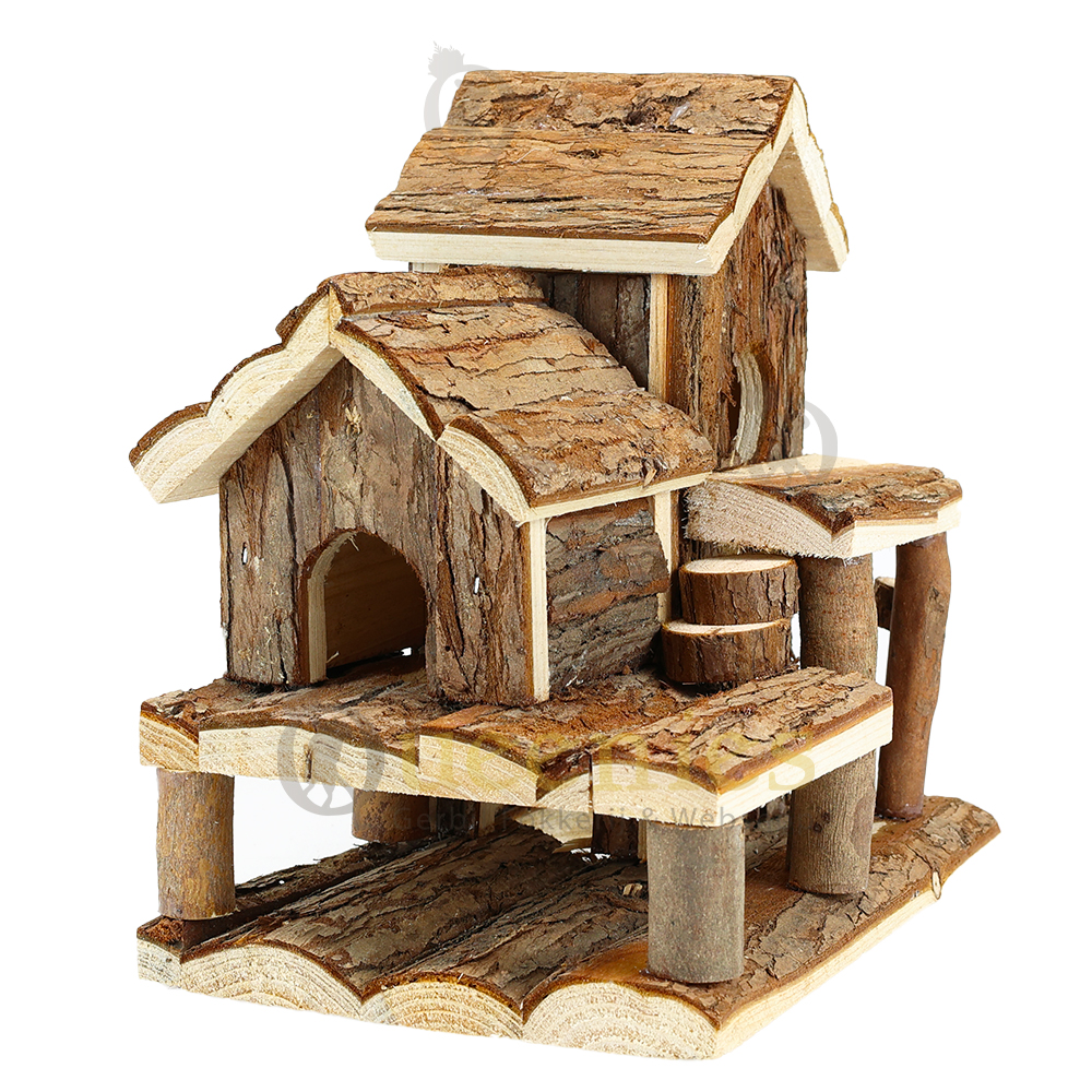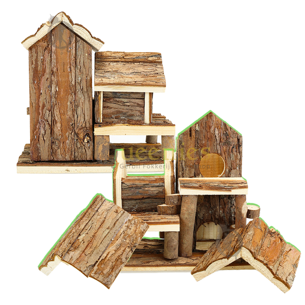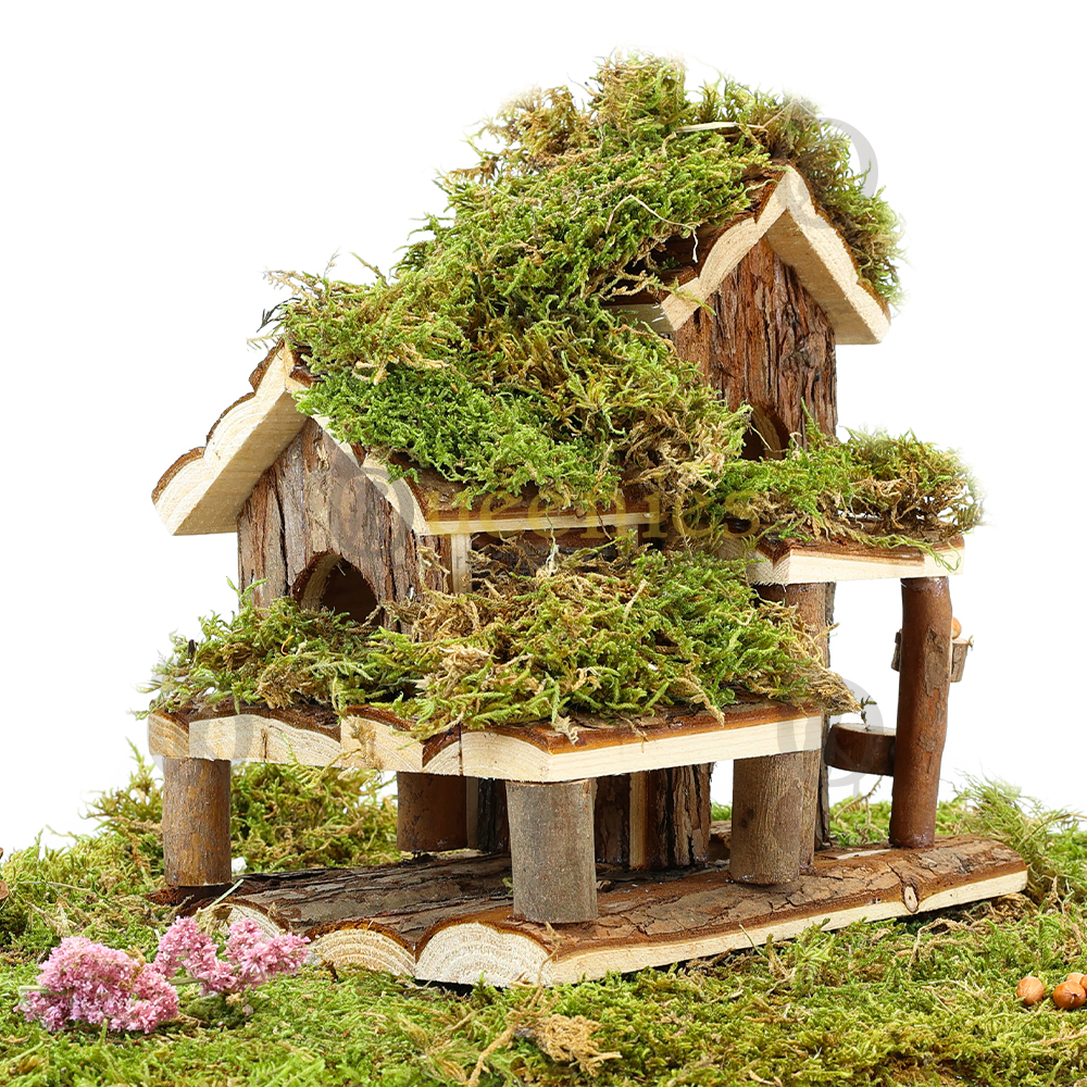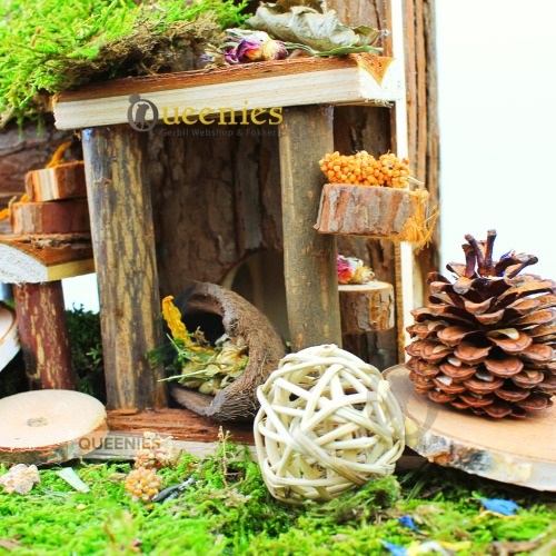 Voeg zelf nog wat Gedroogd Terrarium mos toe op de daken van dit huisje en op de balkonnen en het oogt direct klaar voor gebruik in een natuurlijk ingericht Hamster Terrarium.