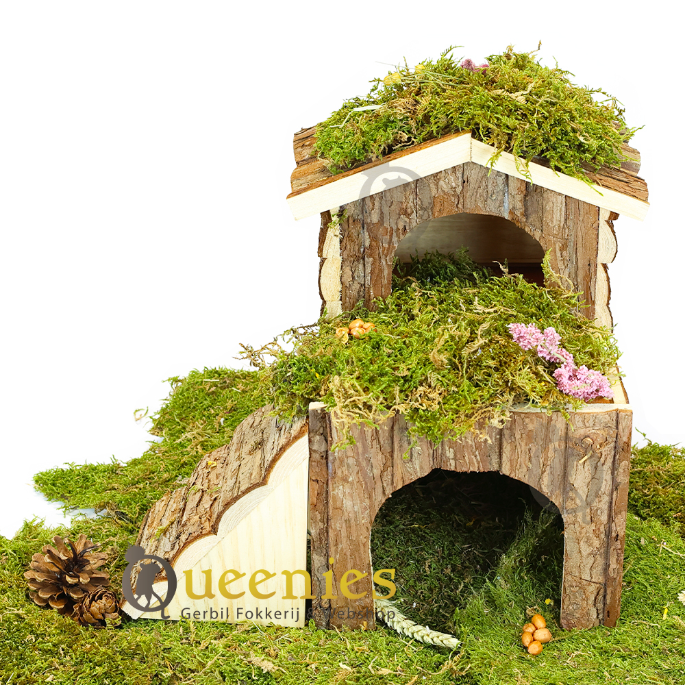 Knaagdierhuis Bjork is gemaakt met 2 verdiepingen en een helling aan de zijkant waar de Gerbils gemakkelijk op kunnen klimmen om bij de bovenste etage te kunnen komen. In het onderste gedeelte van dit Degoe huisje kunnen ze hun slaapplek maken en zich veilig terug trekken om zichzelf te wassen of een lekker snoepje te eten. In het bovenste gedeelte van dit ratten huis kunnen de Gerbils gebruiken als hun chill plek.