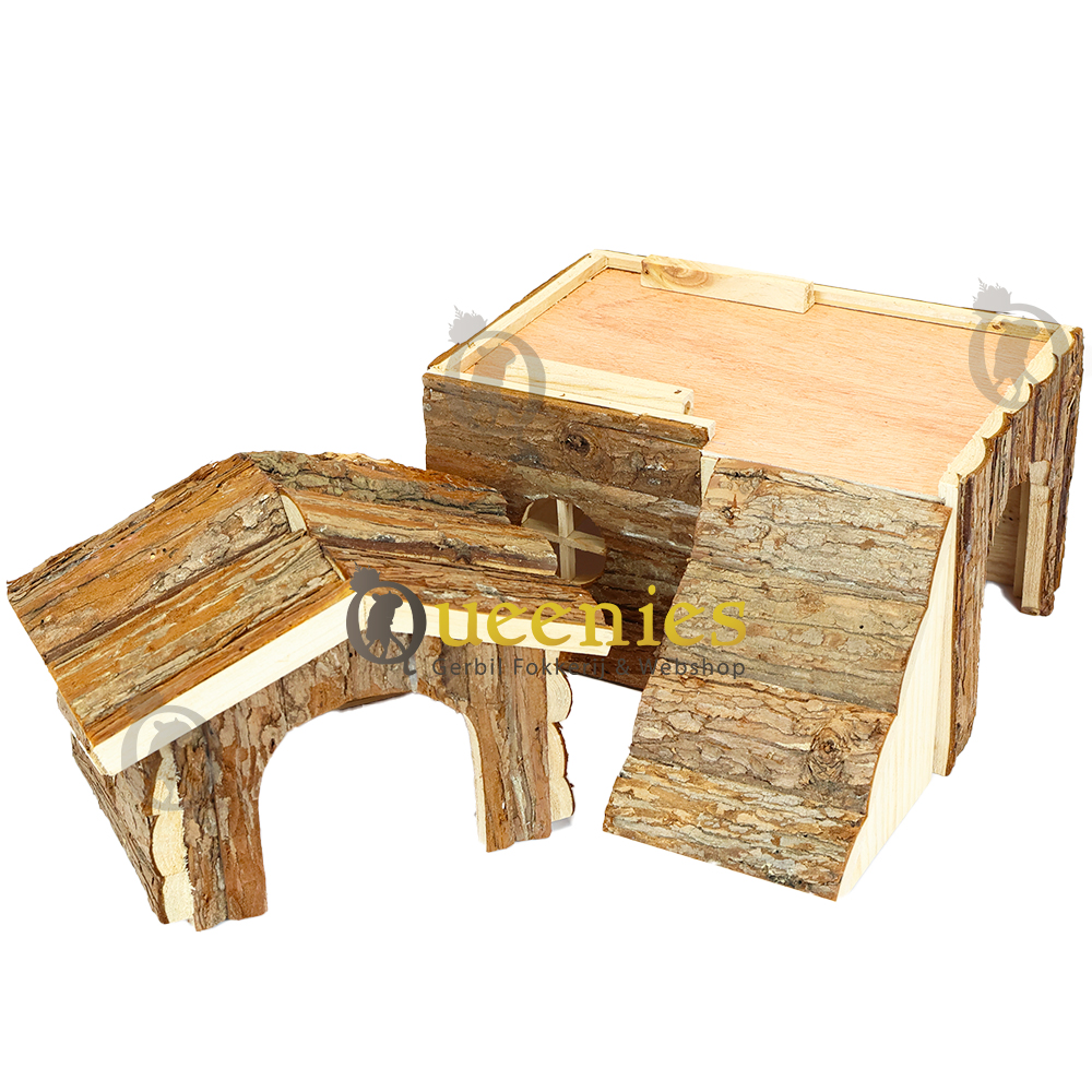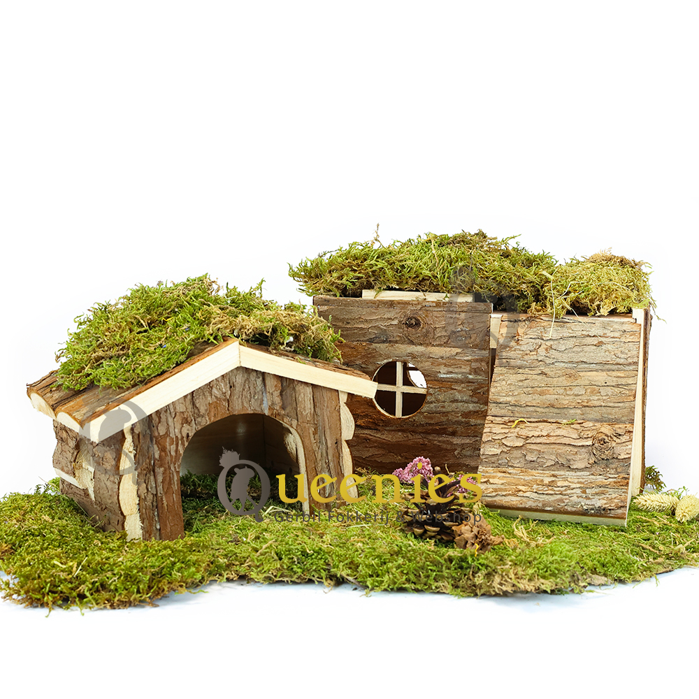 Ook dit huisje is gemaakt van natuurhout met schors zonder hars. De onderkant van Huisje Bjork is open. Een leuk en schattig huisje als slaapplek voor kleine knaagdieren die op een houten plateau gezet kan worden of half ingegraven kan worden in de bodembedekking.