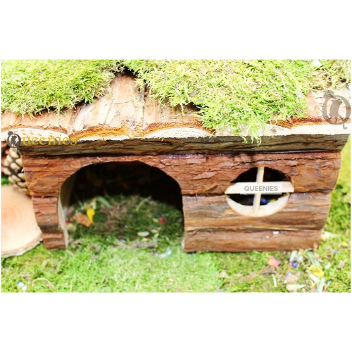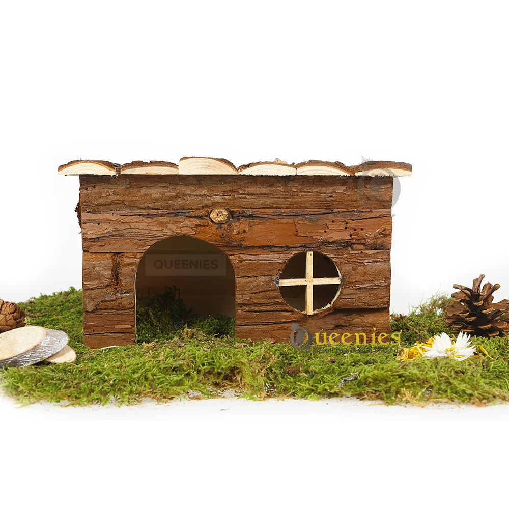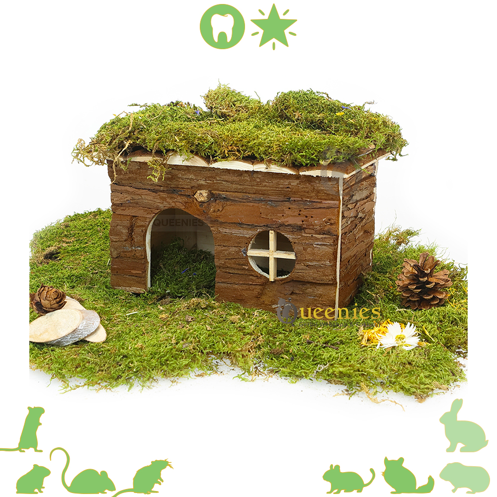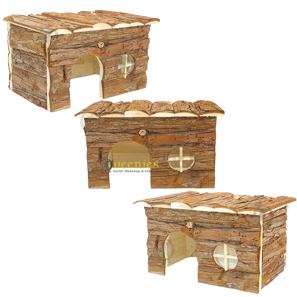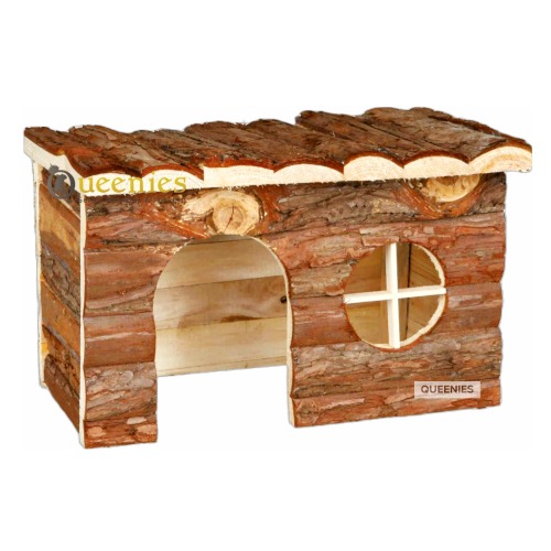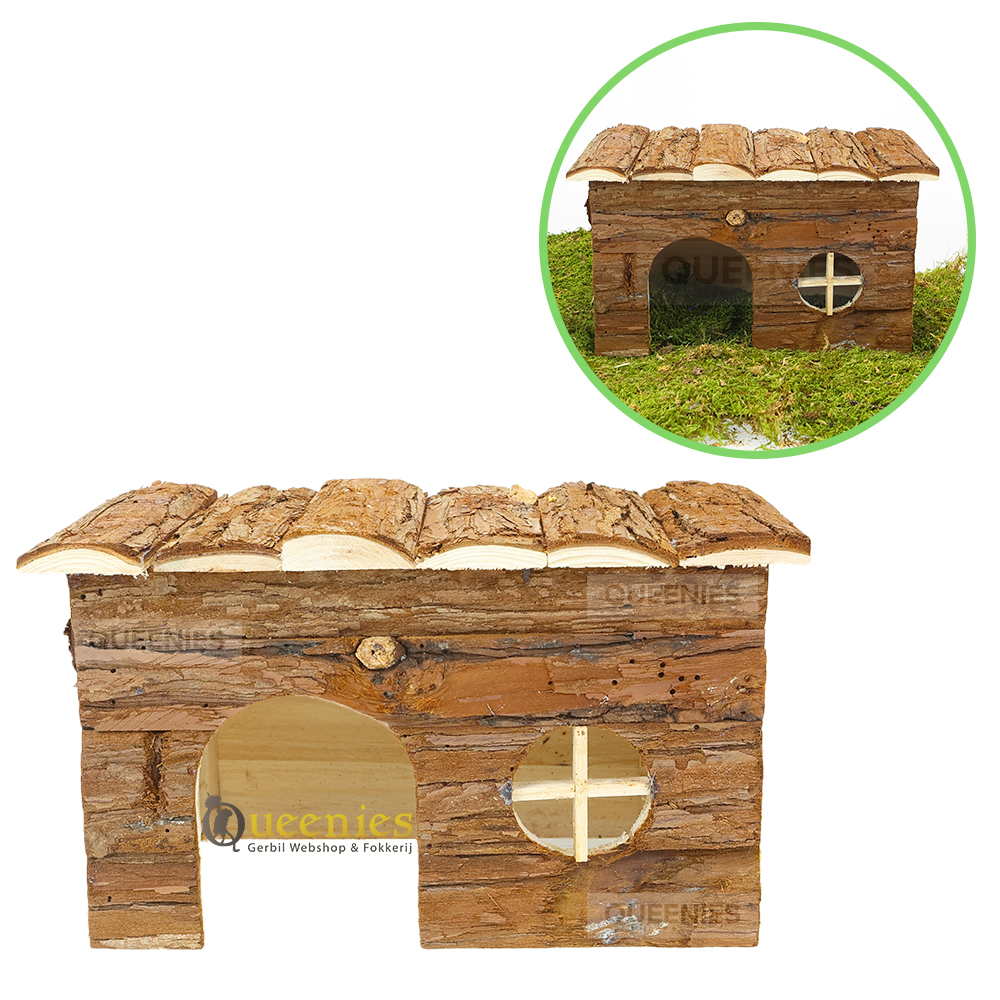 Huisje Jerrik 28 cm is erg geschikt voor Hamsterscaping door zijn vorm en natuurlijke uitstraling die het huisje van zichzelf heeft. Een blokhut idee achtig knaagdierhuisje past in iedere Hamsterscaping of Landscaping thuis. Een huisje met een plat dak leent zich uitstekend om wat gedroogd terrarium mos op te bekleden of andere vormen van natuurlijke materialen zoals Dennenappels. Vanwege de open onderkant kan het hamsterhuis ook half ingegraven worden in de bodembedekking. Dit huisje Jerrik voor kleine en middel grote knaagdieren is met name erg geschikt voor Goudhamsters die een mooie hamsterscaping hebben gekregen van hun baasje.