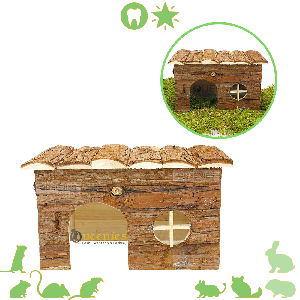Afmeting. 28 × 16 × 18 cm ( L x B x H ) Afmeting deur: ongeveer 5x 7 cm ( B x H ) Materiaal: Hout Geschikt voor: Knaagdieren zoals Degoes, Gerbils, Syrische hamsters, Ratten, Muizen, maar ook alle kleine knaagdieren