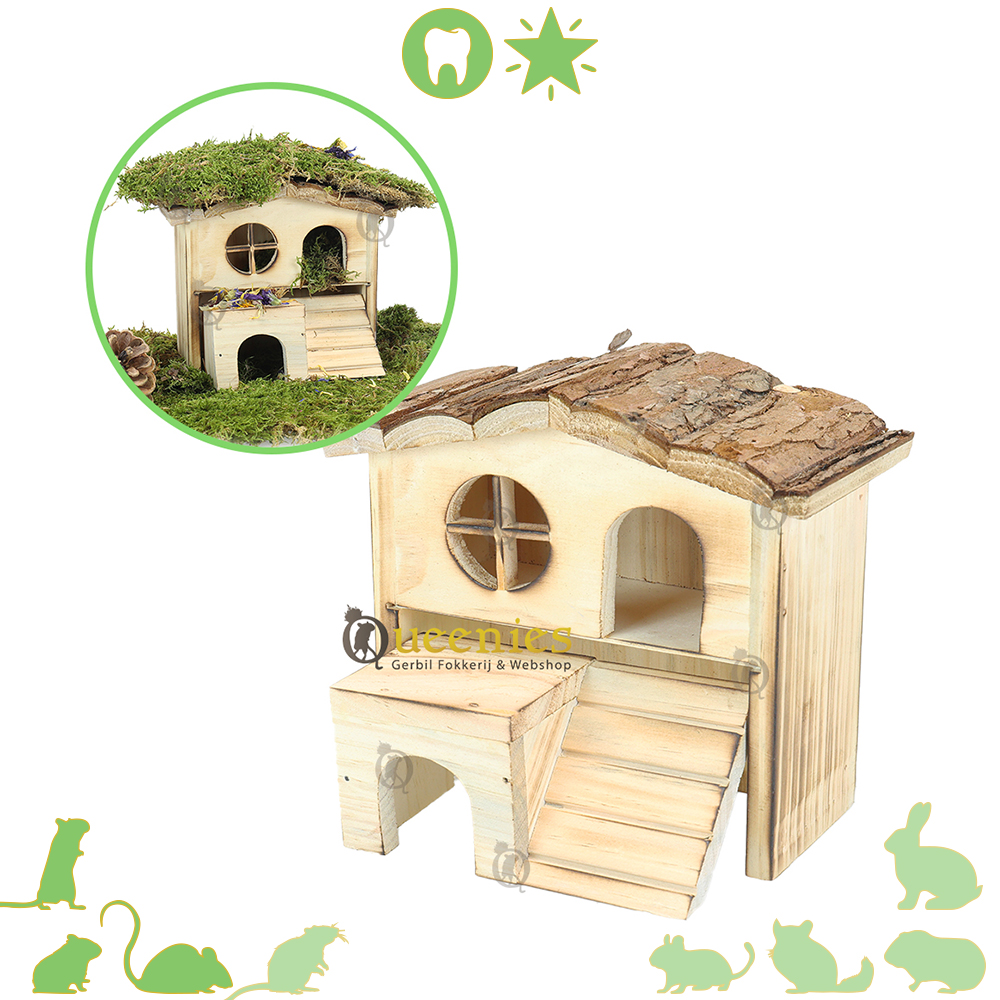 Afmetingen: 17 × 15 × 13 cm Materiaal: gevlamd hout Geschikt voor: Knaagdieren zoals Dwerghamsters, Gerbils en Muizen.