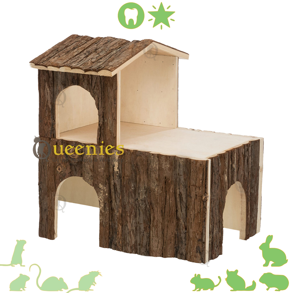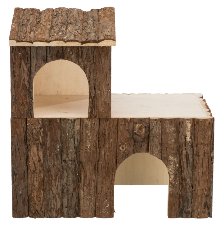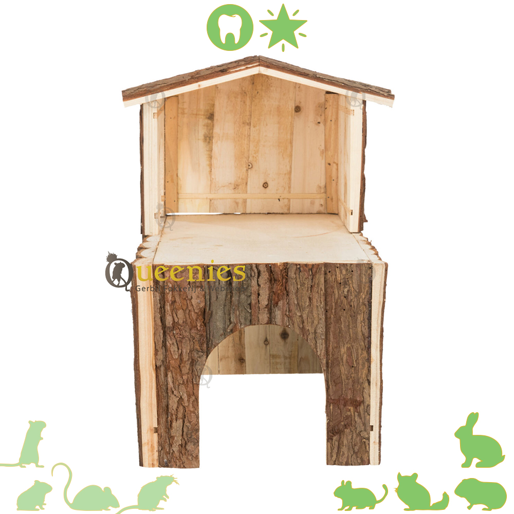 Trixie Huisje Letti is een groot Knaagdieren huis van 45 cm geschikt voor Konijnen en Cavia's. Let op! Een huis(je) geschikt voor onze grotere knagers. Dit past niet zomaar in een Gerbilarium die u heeft gekocht voor 2 Gerbils. Meer geschikt om te gebruiken in een Knaagdieren ren bijvoorbeeld, of in een groot Konijnen kooi / afscheiding in de tuin voor Konijnen en Cavia's. Tenzij u een heel groot gerbilarium heeft van minimaal 120x50x60 (lxbxh) kunt u dit huisje natuurlijk wel aanschaffen. Alle hokken kleiner dan dat, raden wij dit product niet aan.