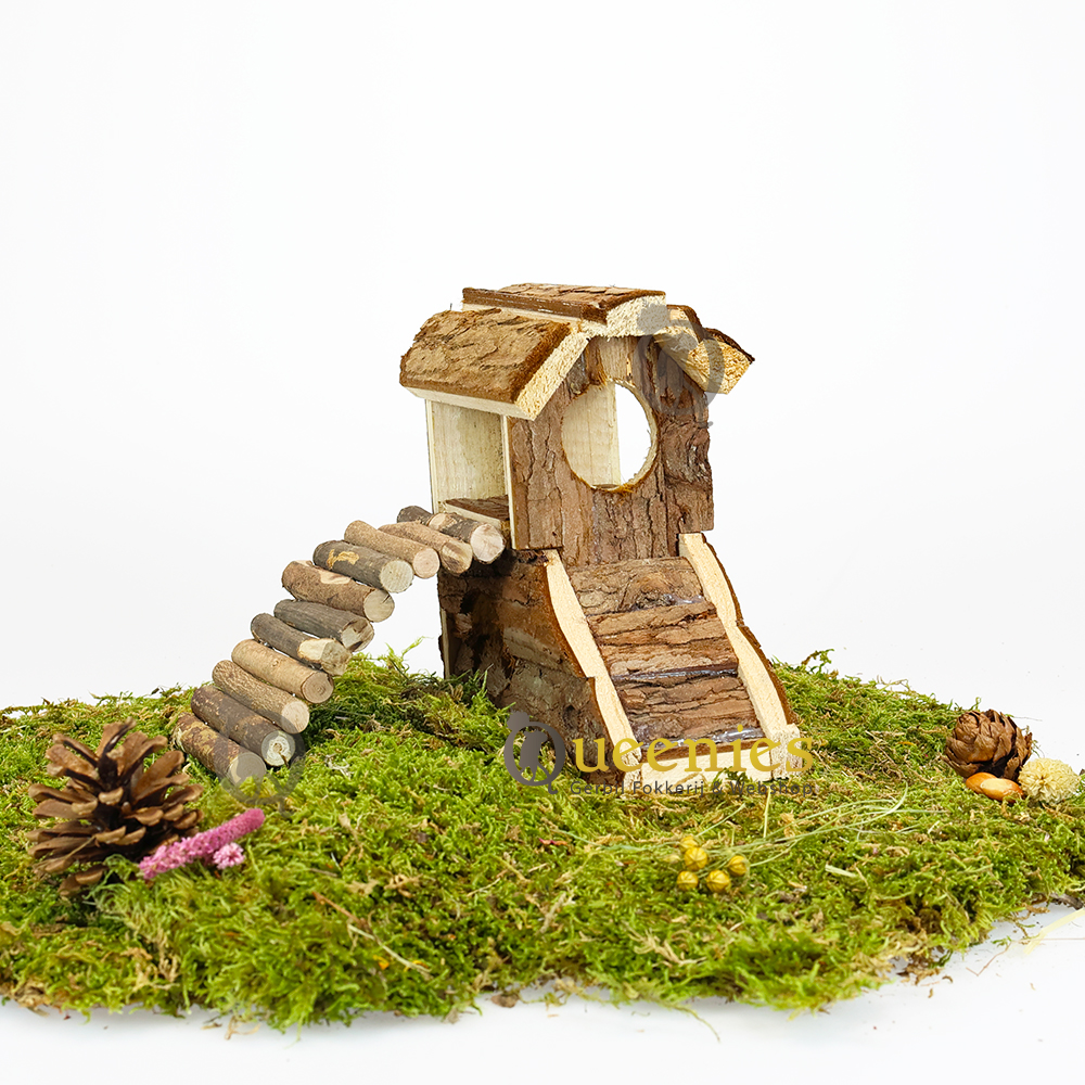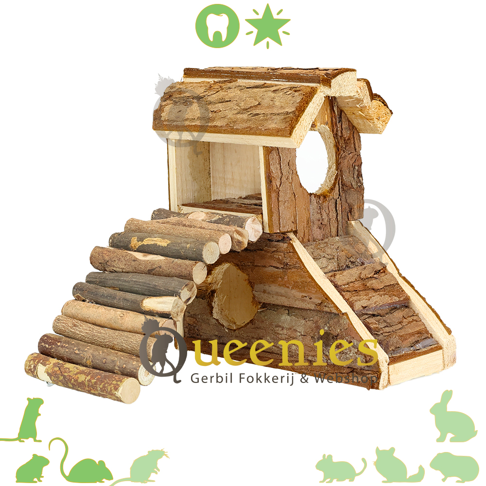 Afmeting: ( L x B x H ) 17 x 10 x 17Materiaal: Natuurlijk schorshoutGeschikt voor: Knaagdieren zoals Gerbils, Dwerghamsters en Muizen