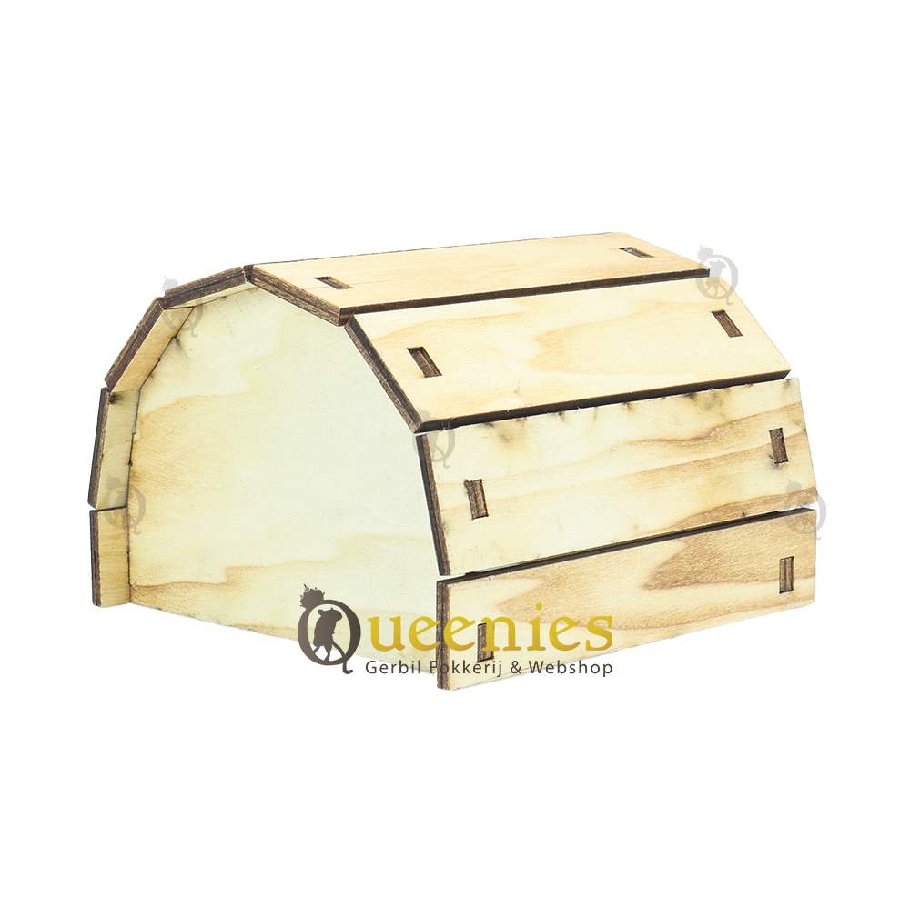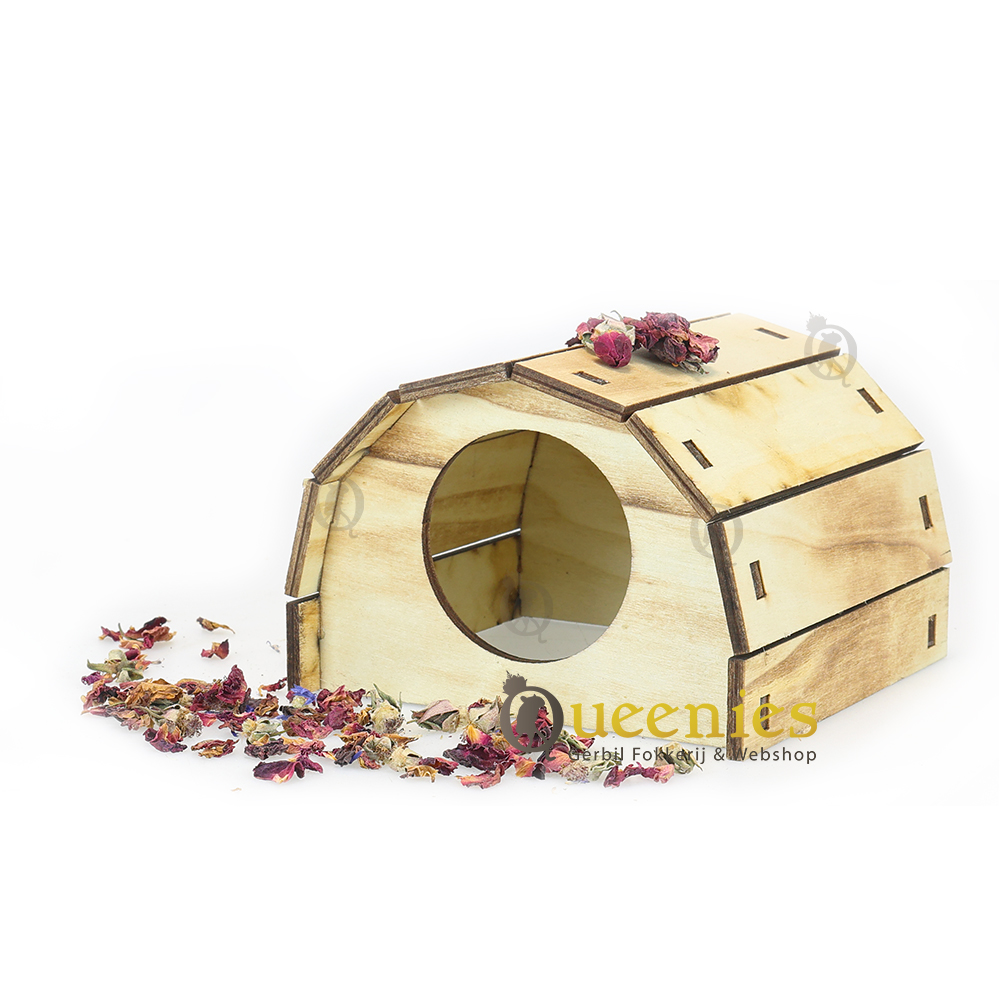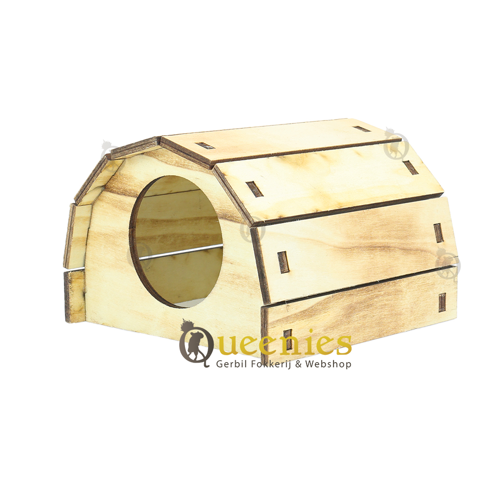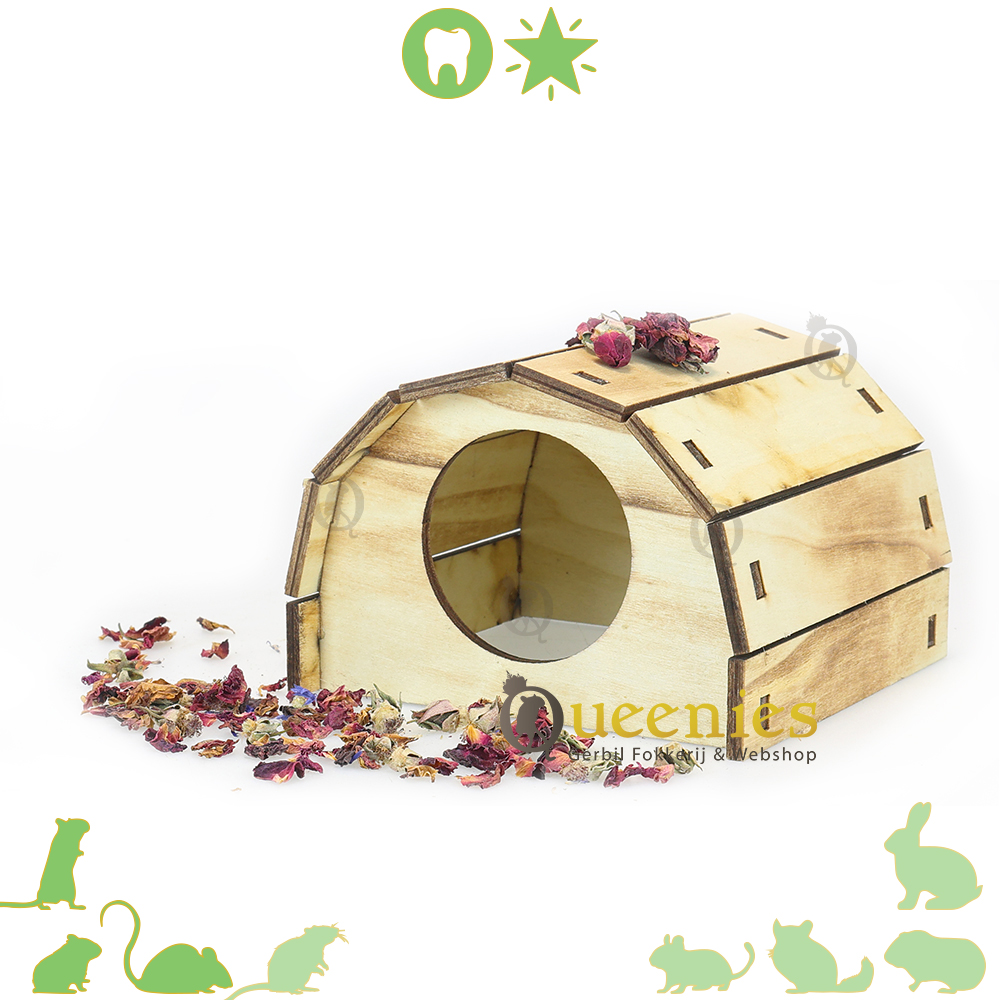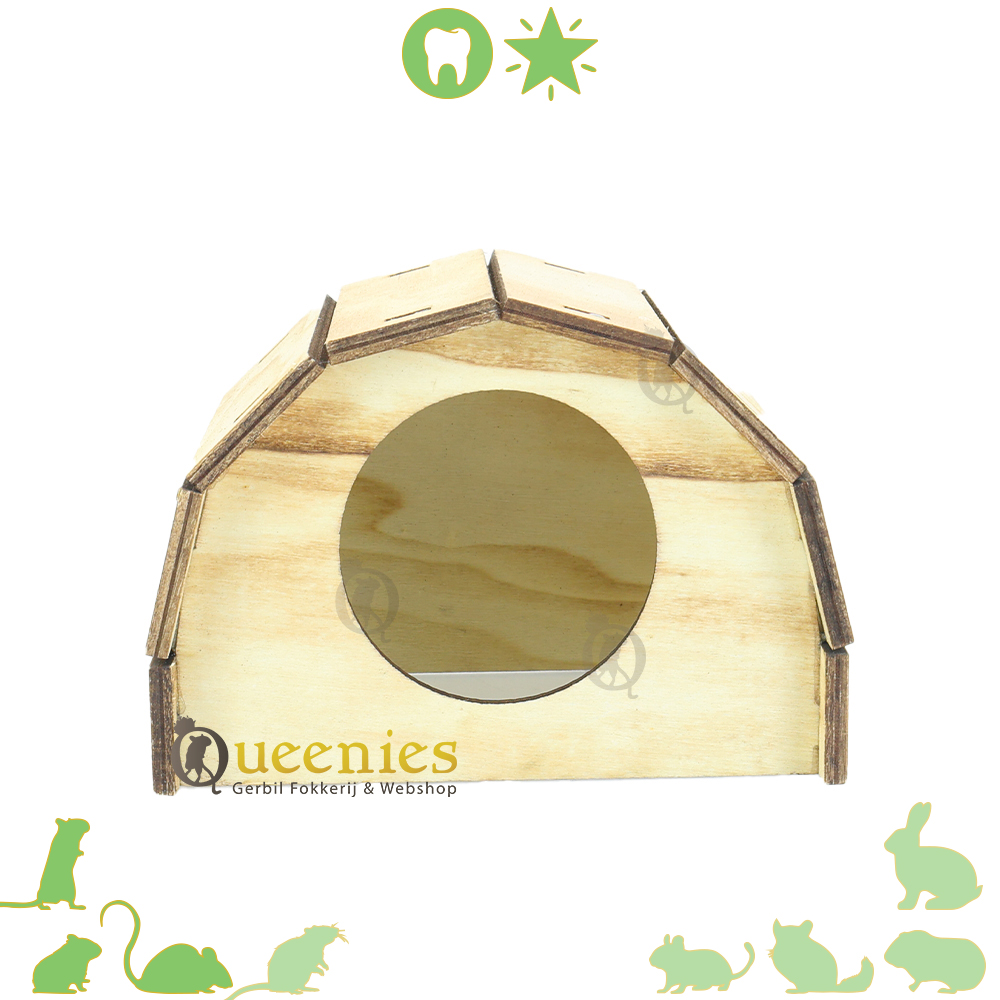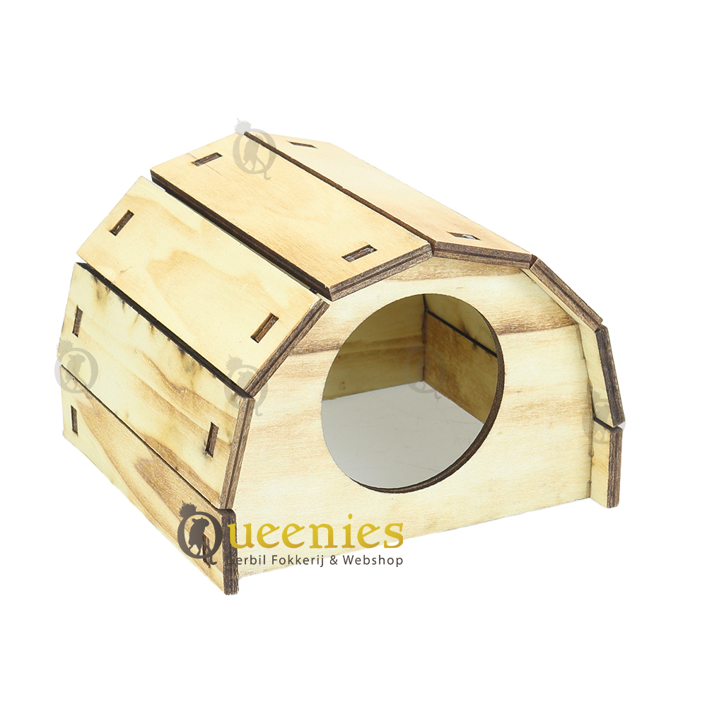 Afmetingen: 13 × 9 × 13 cm ( L x H x D ) Materiaal: Gevlamd hout Geschikt voor: hamsters, muizen en natuurlijk Gerbils