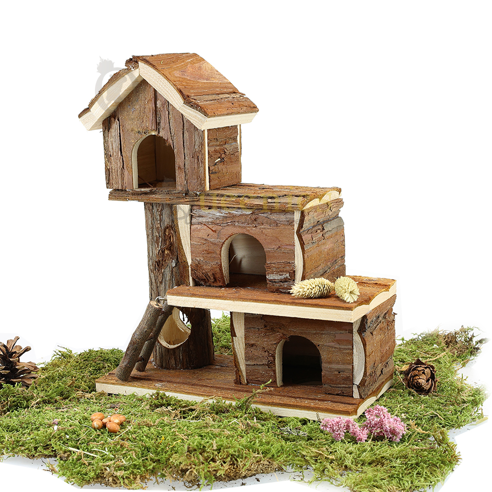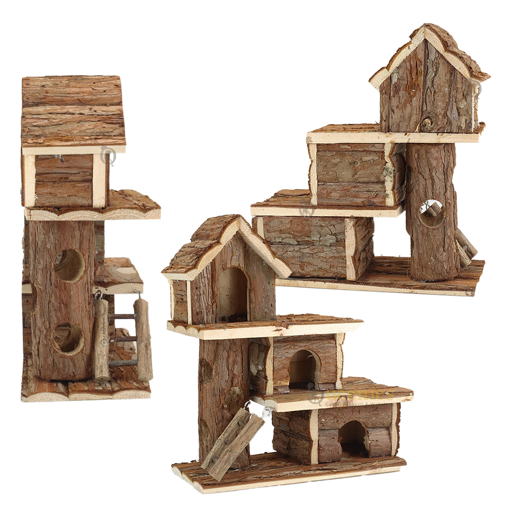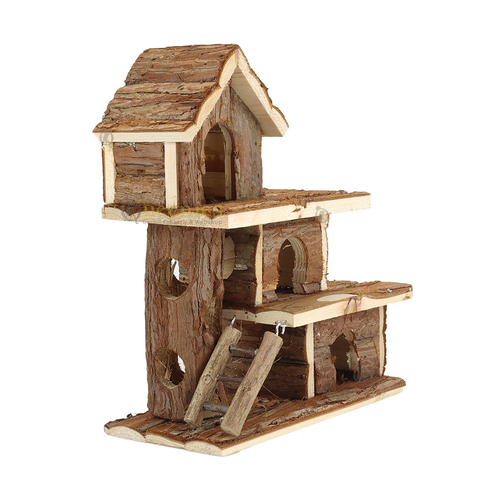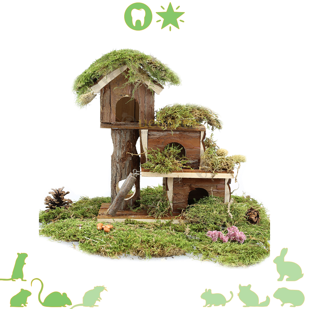 Dit huisje is leuk en geschikt voor kleine knaagdieren zoals Gerbils, Dwerghamsters en kleine muissoorten. Een Syrische hamster kan het ook wel gebruiken als ladder, maar past niet in de huisjes.